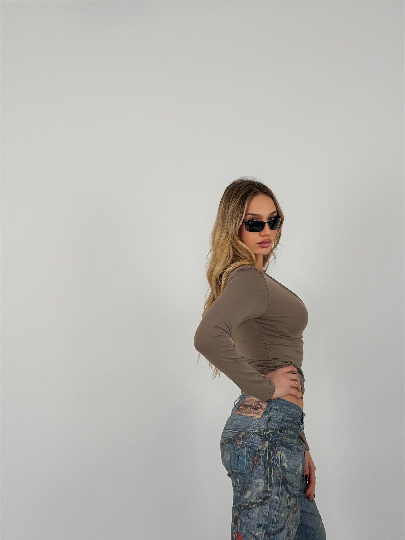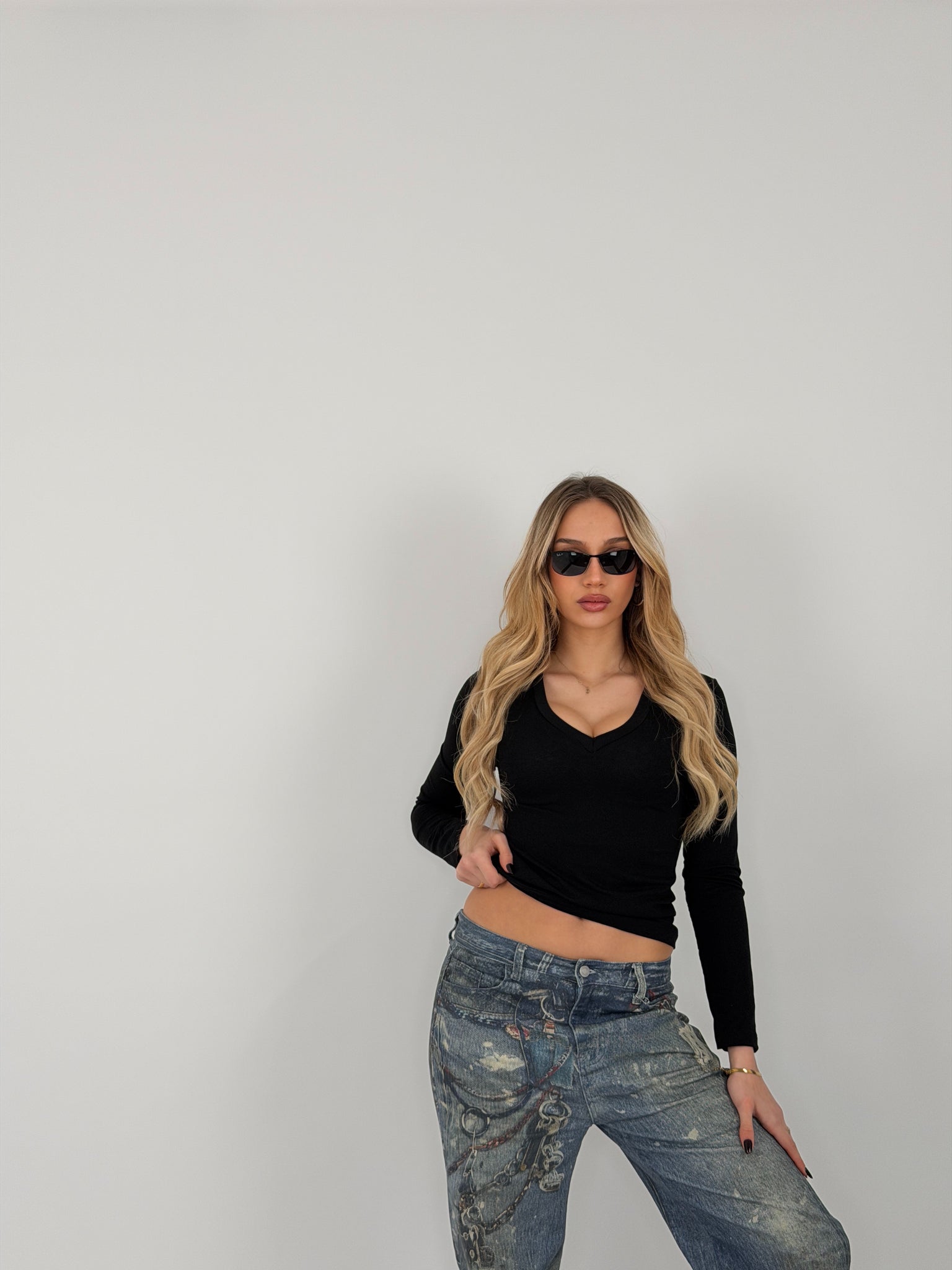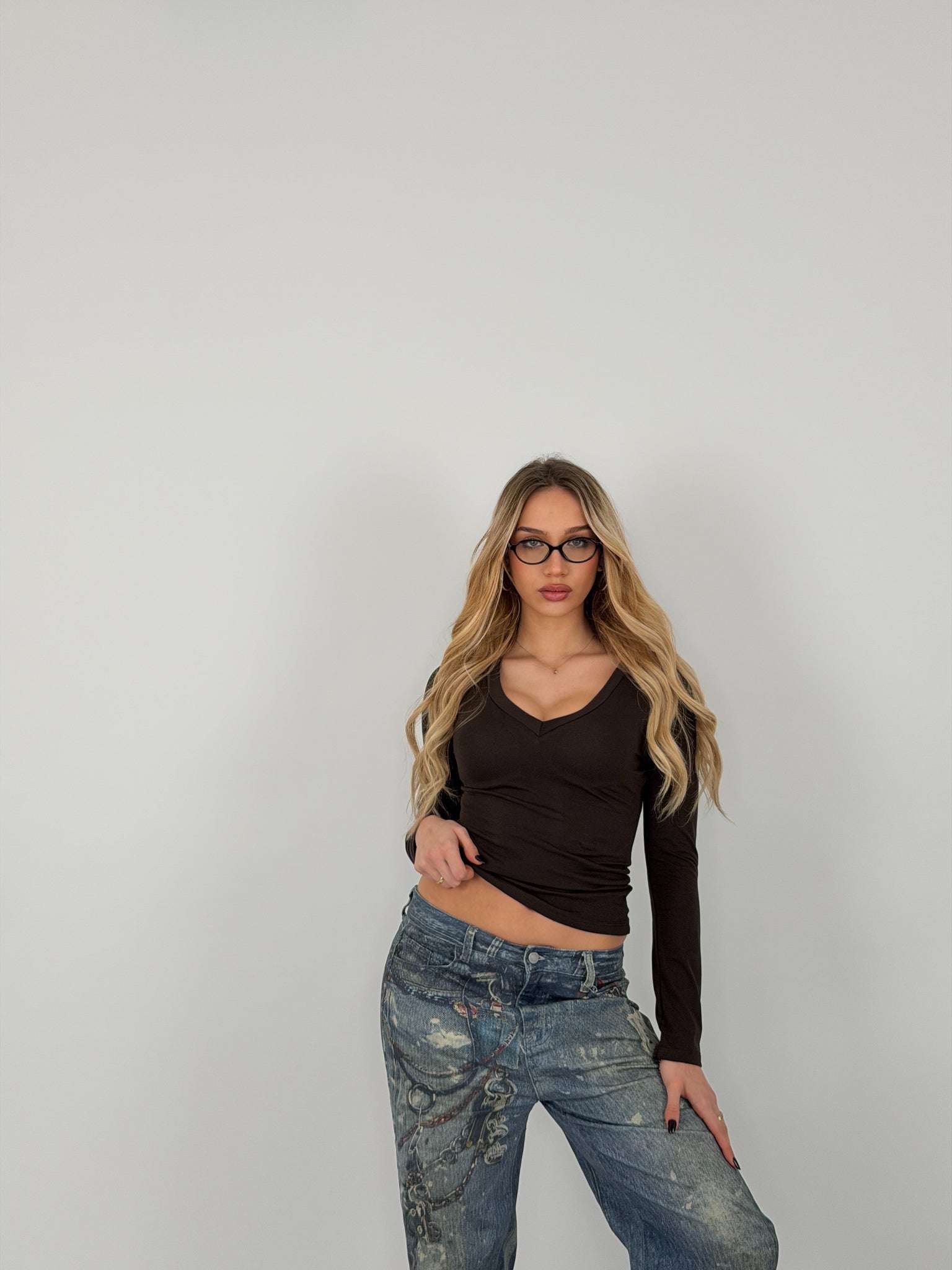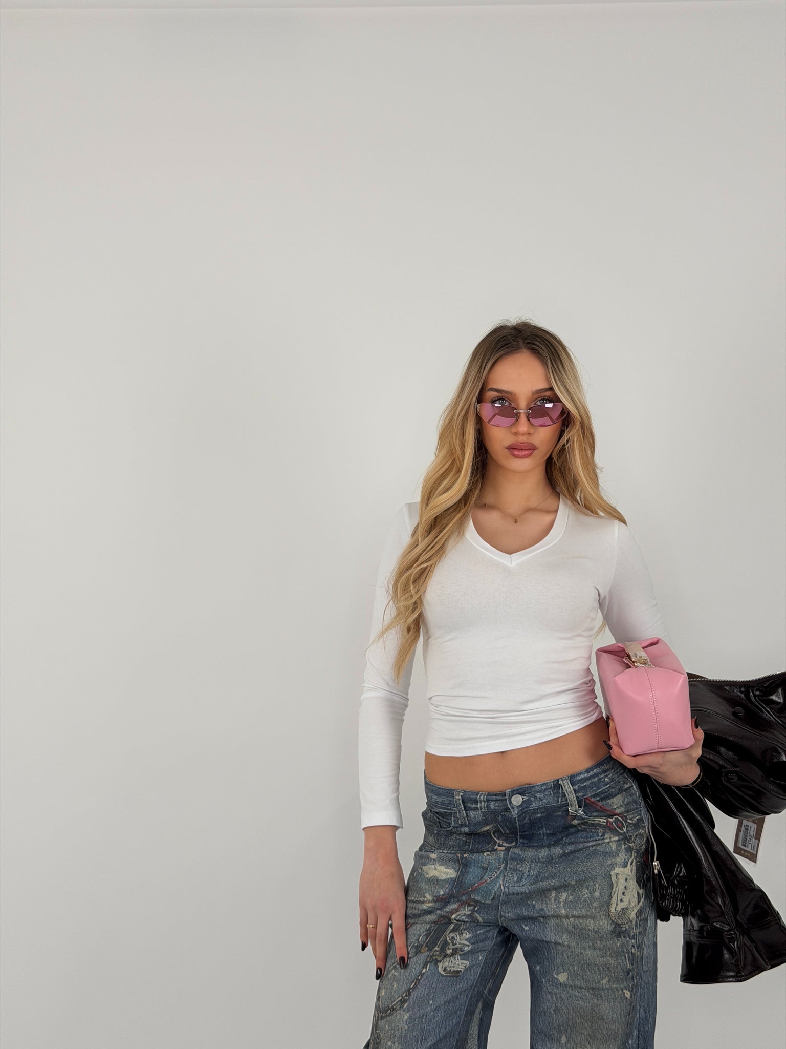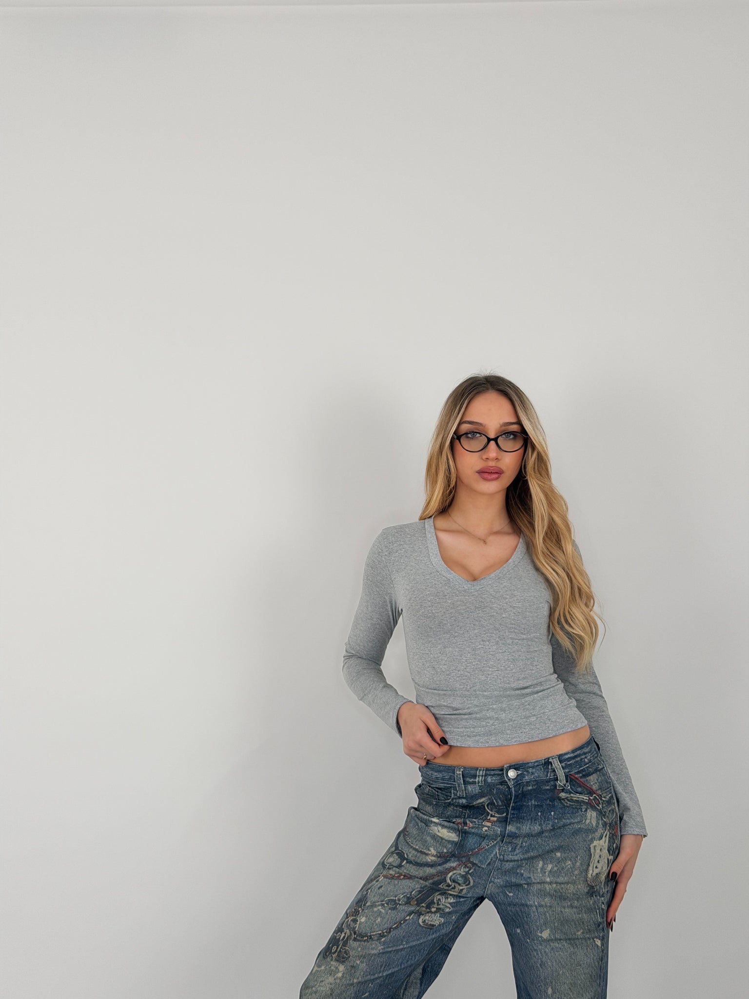 Maglia di cotone, scollo a “V” e manica lunga, slim fit.