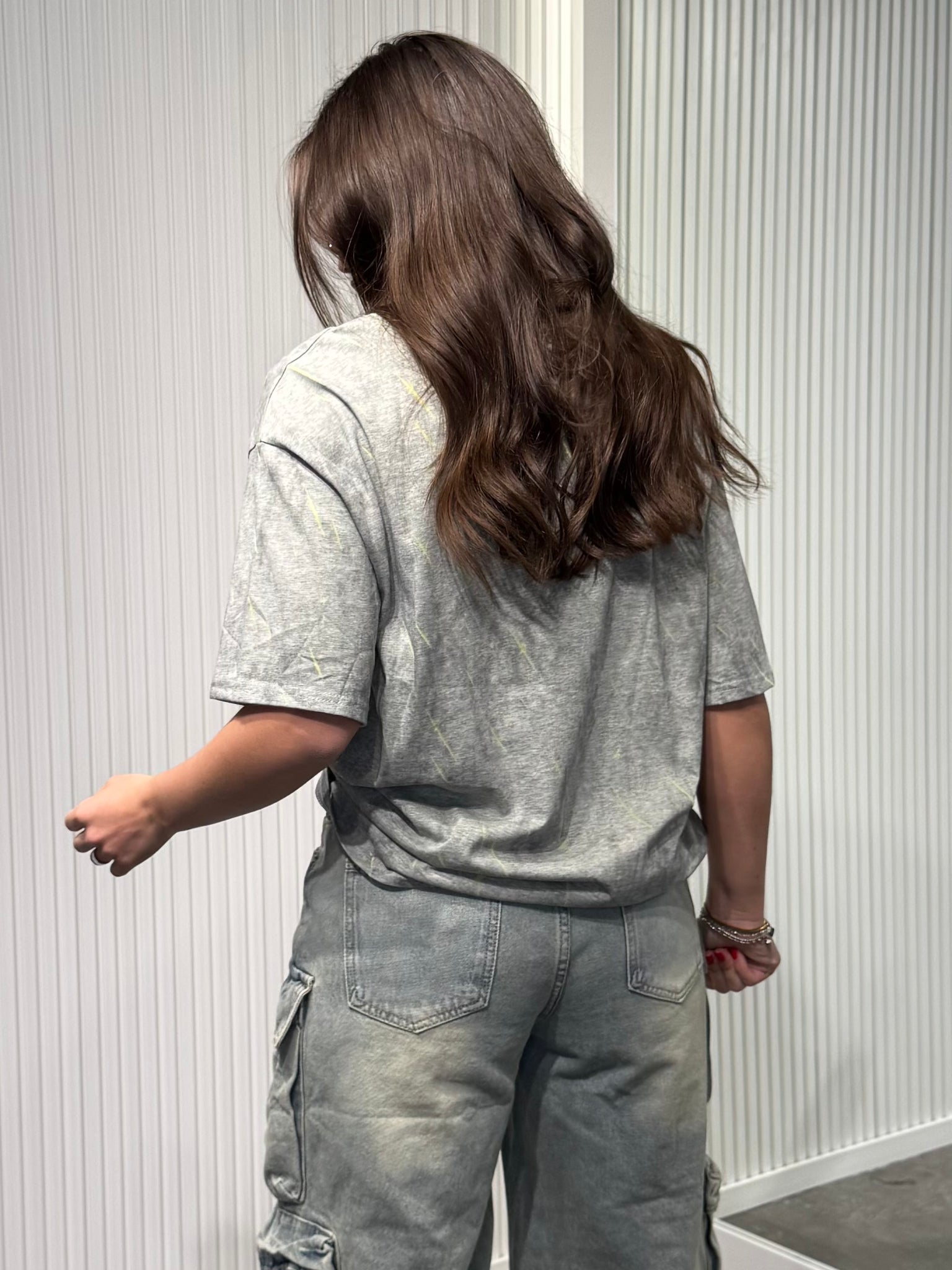 T-shirt in cotone over size con dettaglio strappi colorati con tessuto semitrasparente