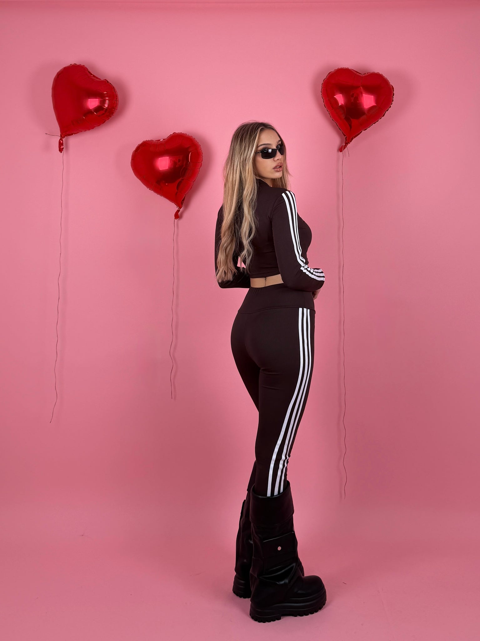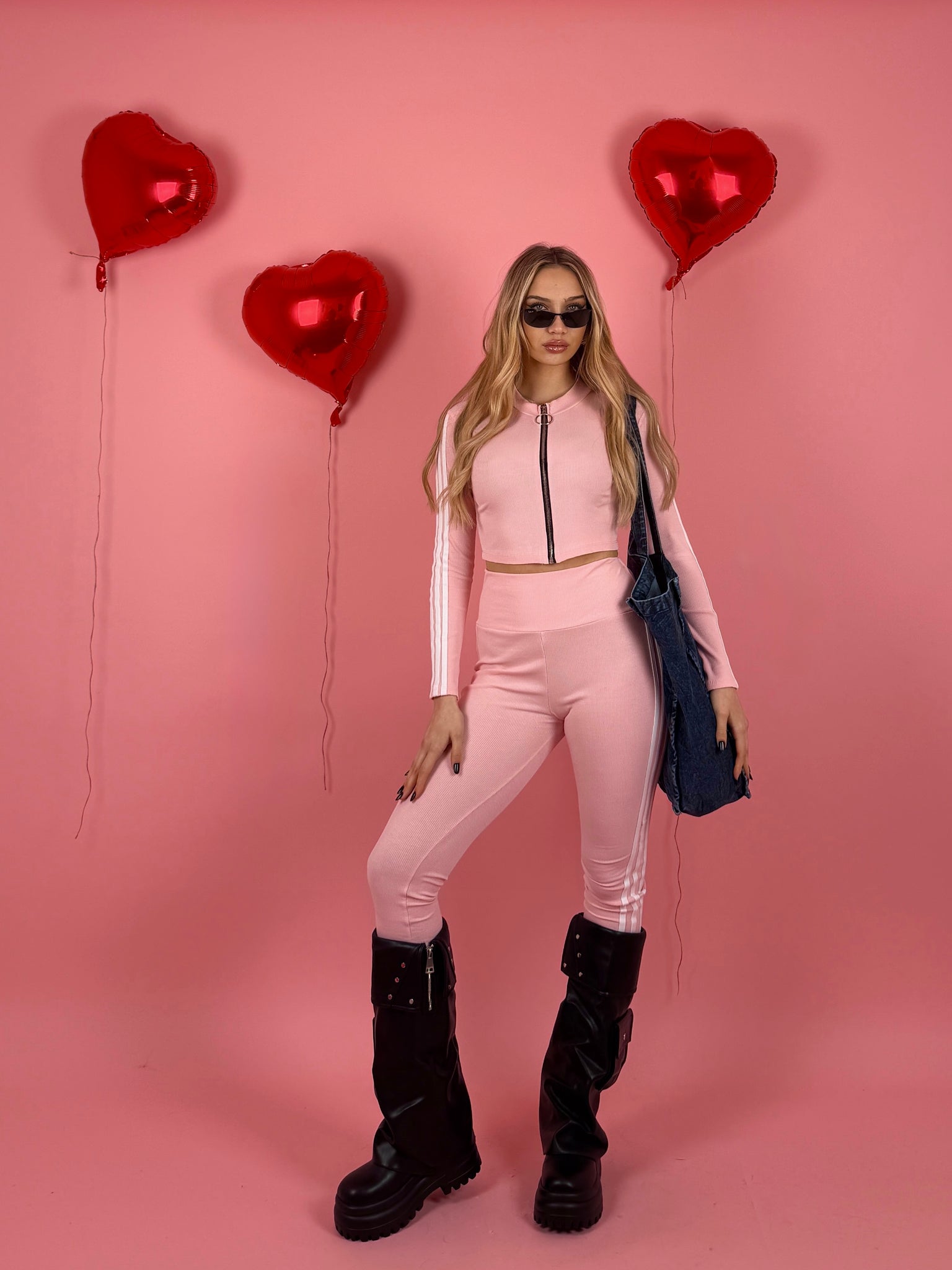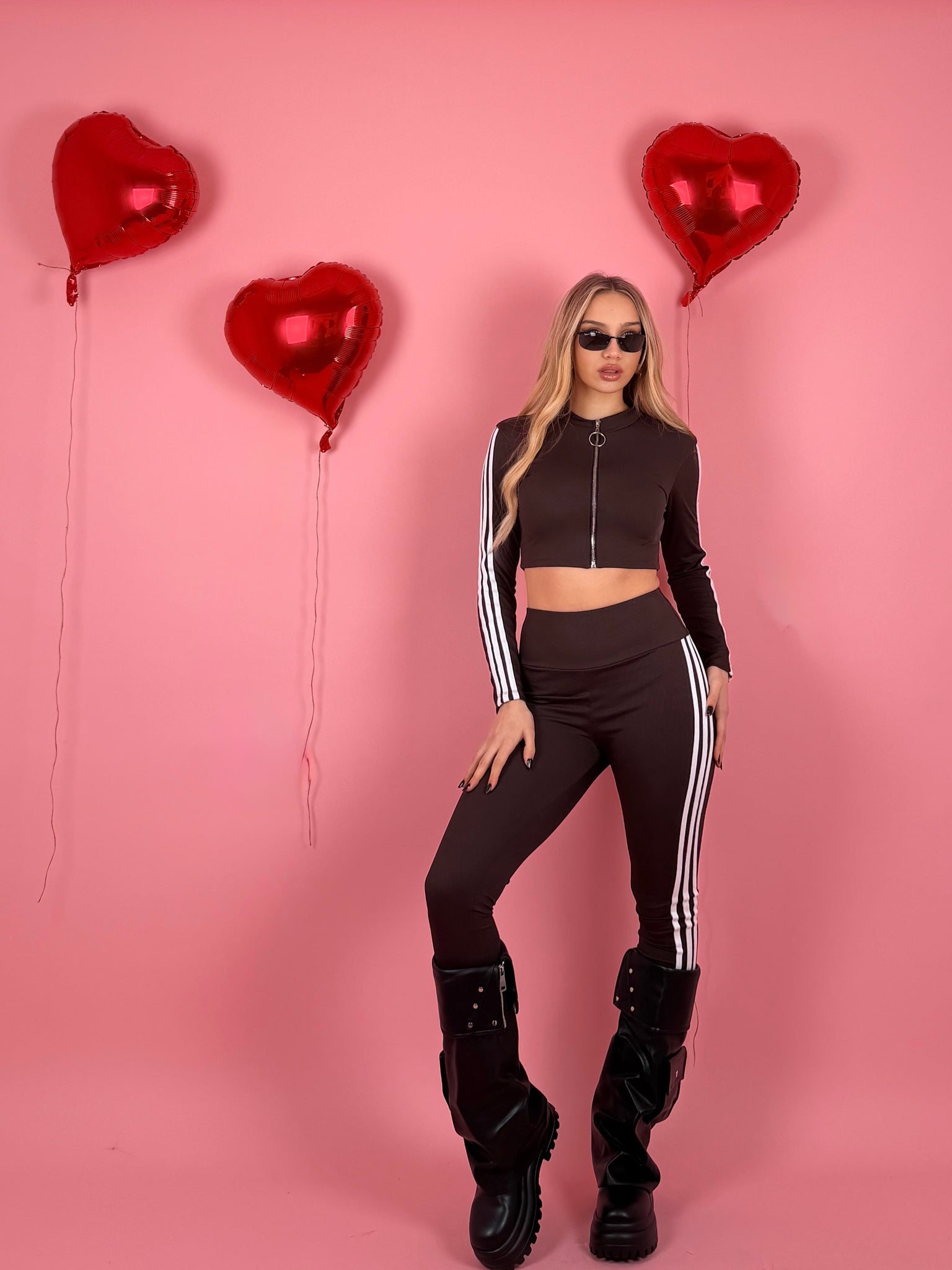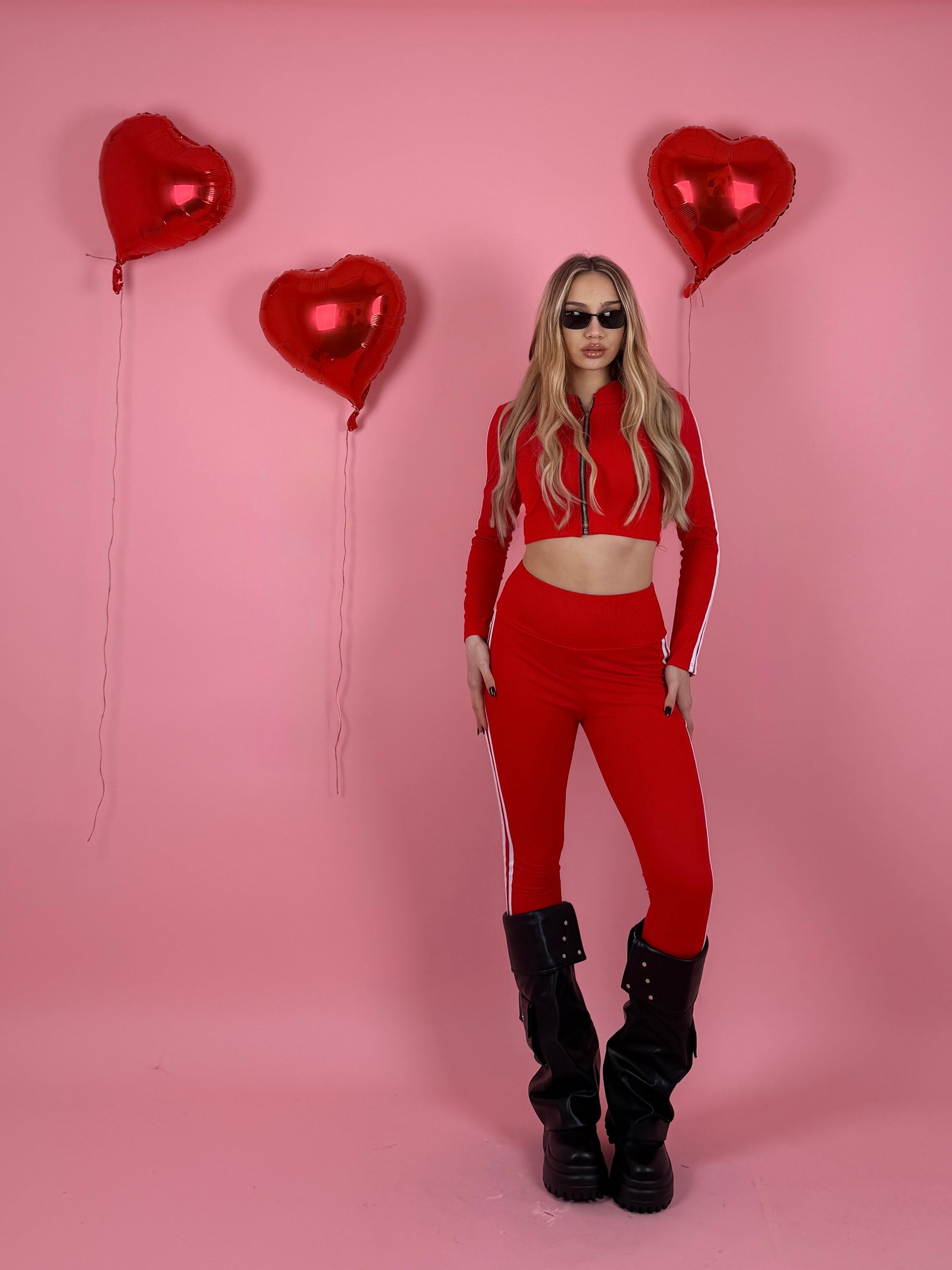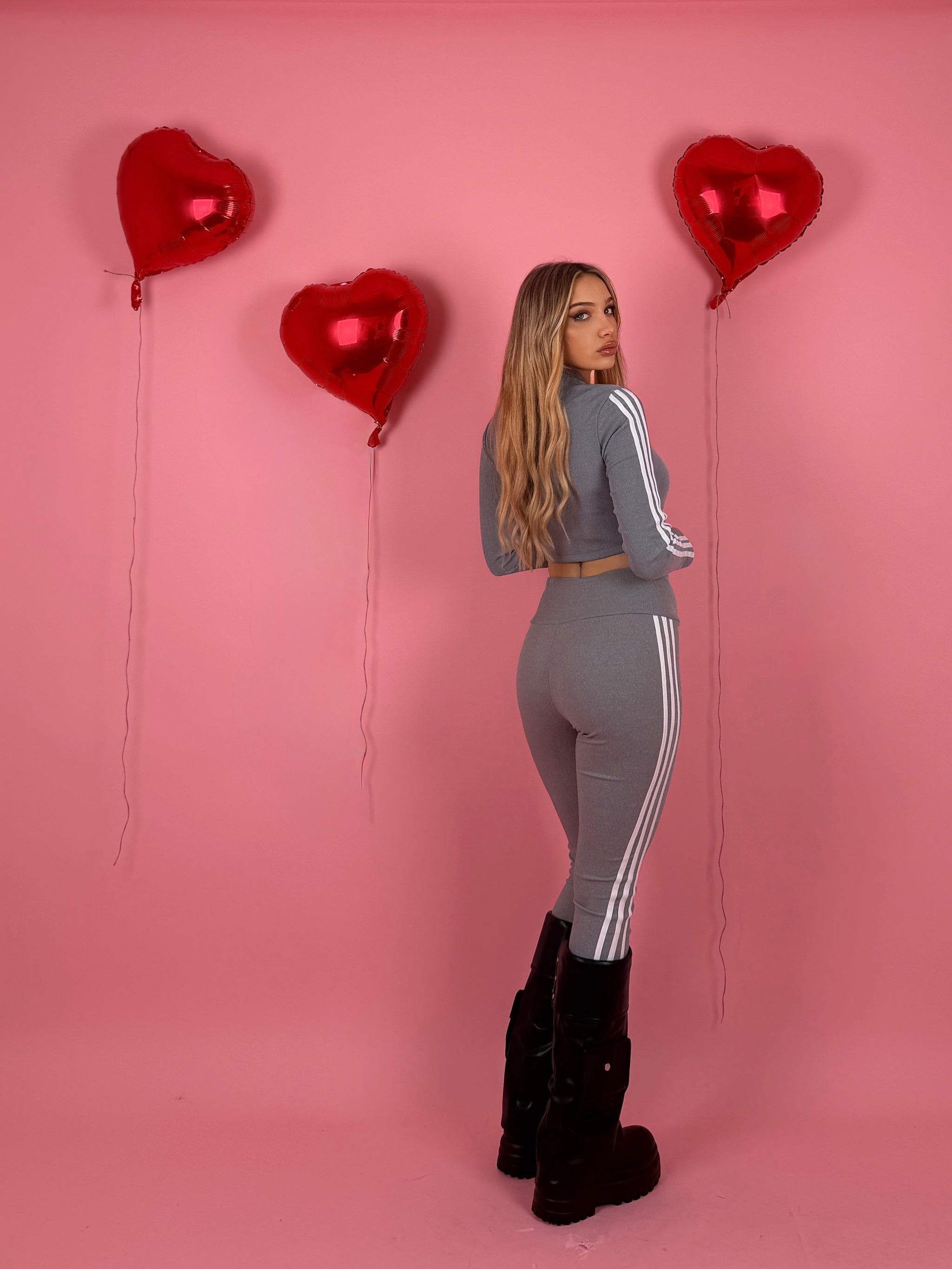 Completo a costine composto da felpa con zip sul davanti e manica lunga e leggings dettaglio strisce laterali.