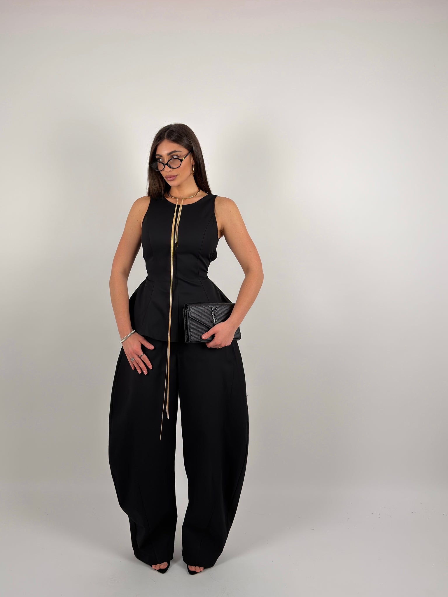 Completo tessuto SIMILDENIM, pantalone ballon e top giromanica con stringhe