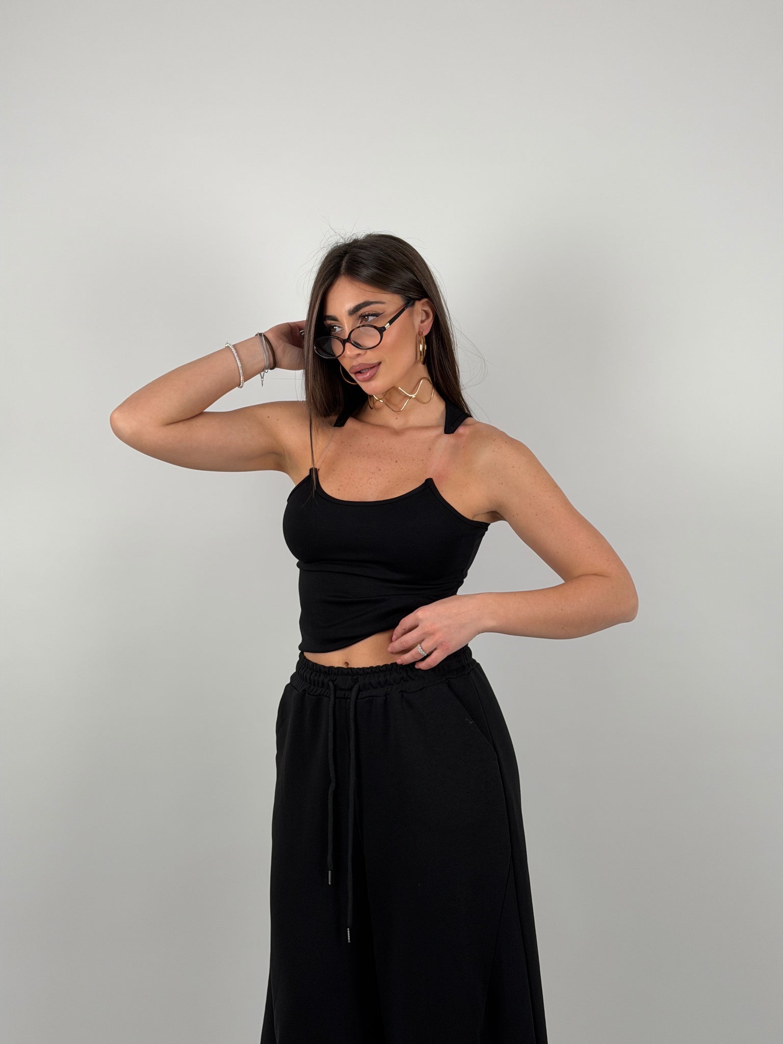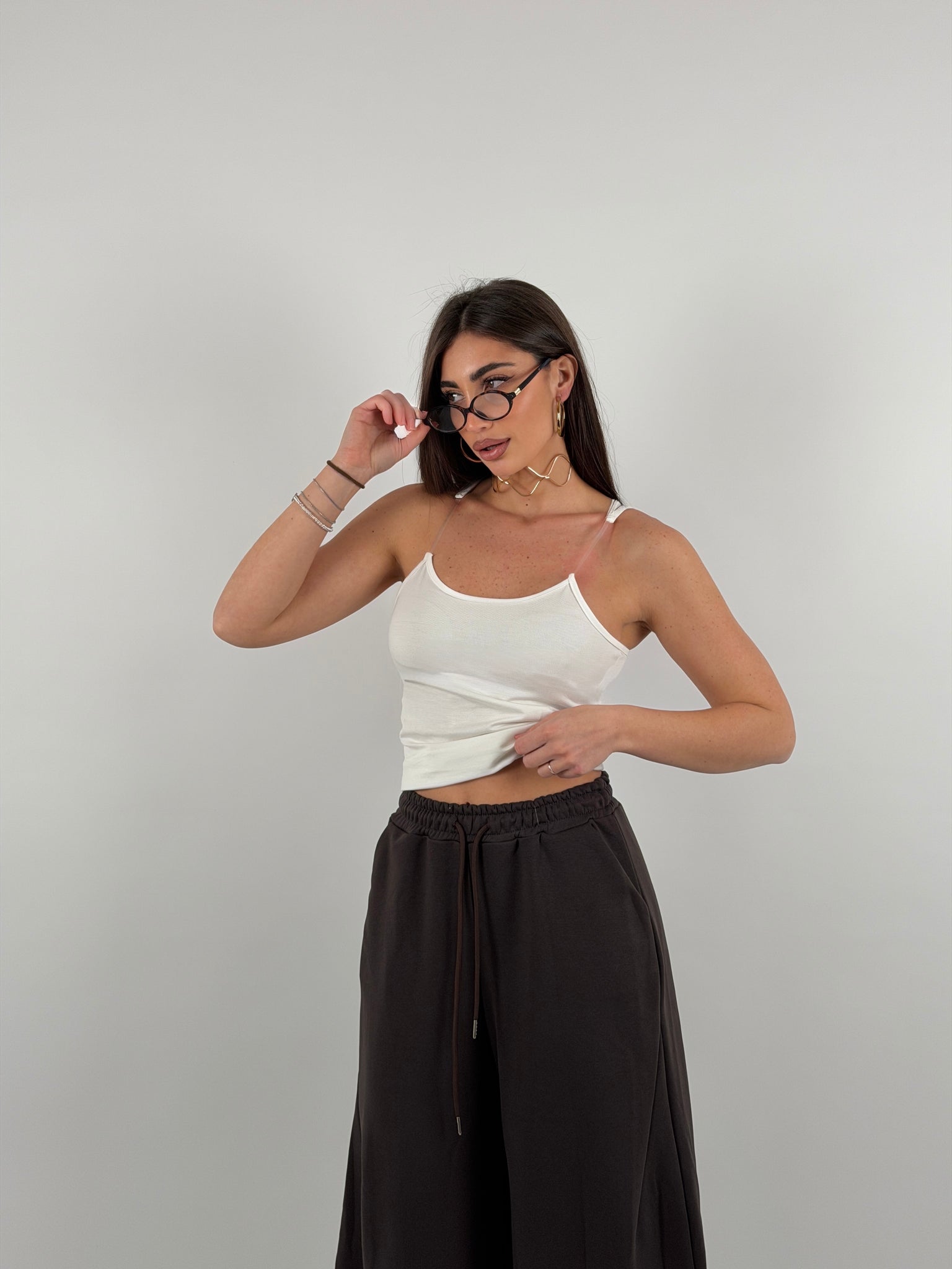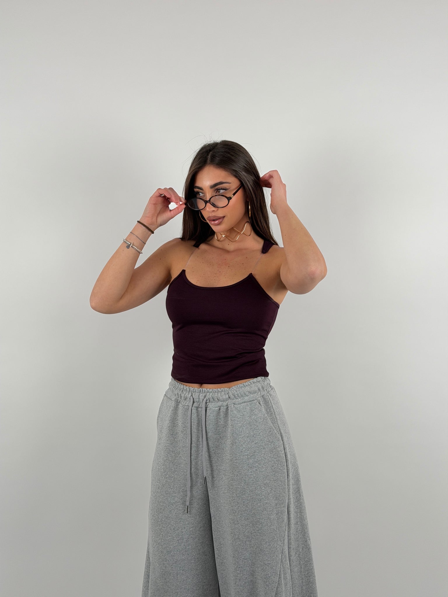 Top con bretelline in silicone trasparente, tessuto a costine strette