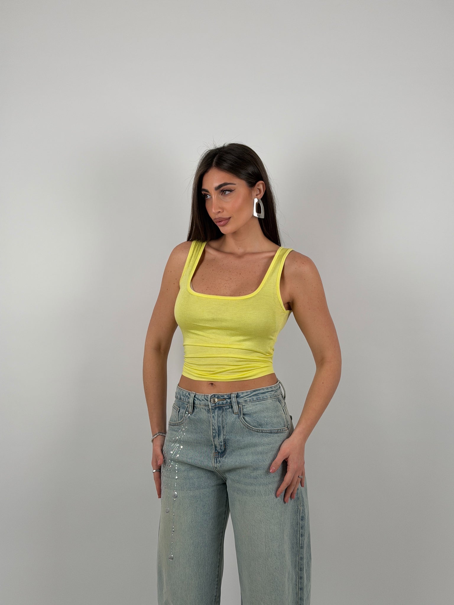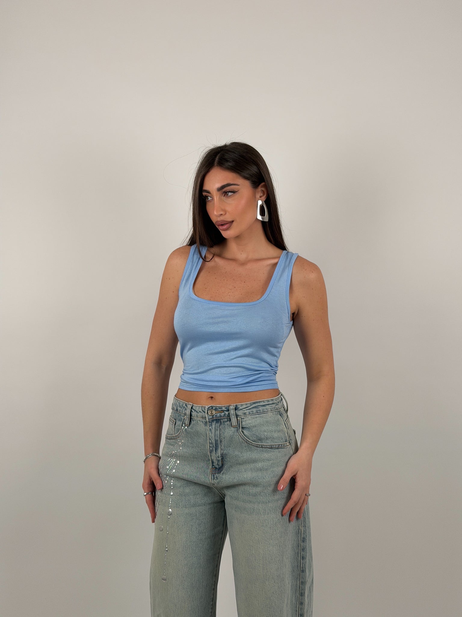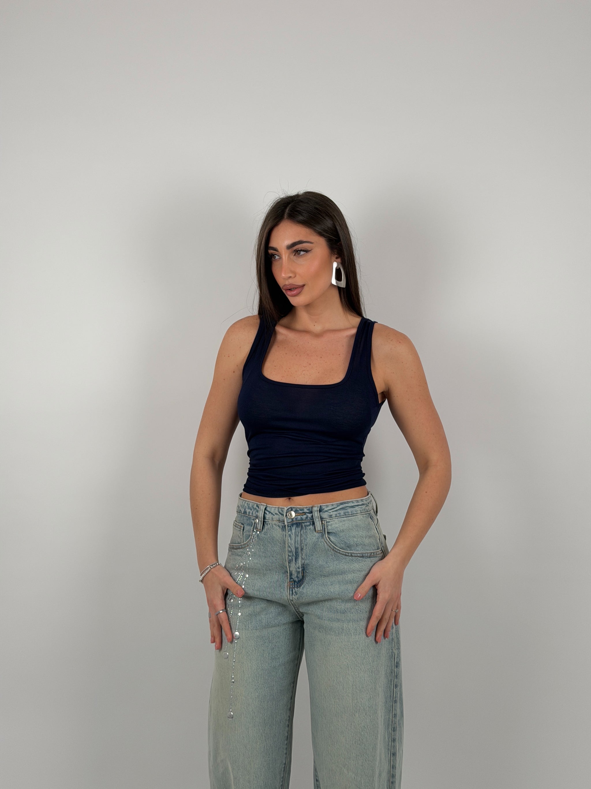 Canotta semivelata, scollo quadrato.