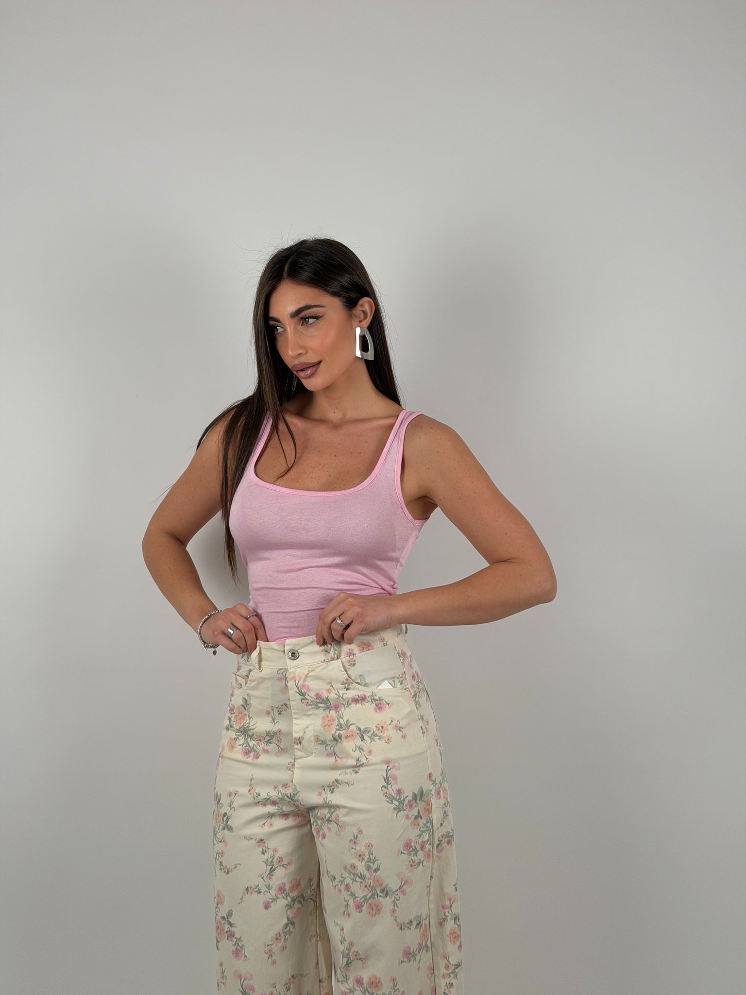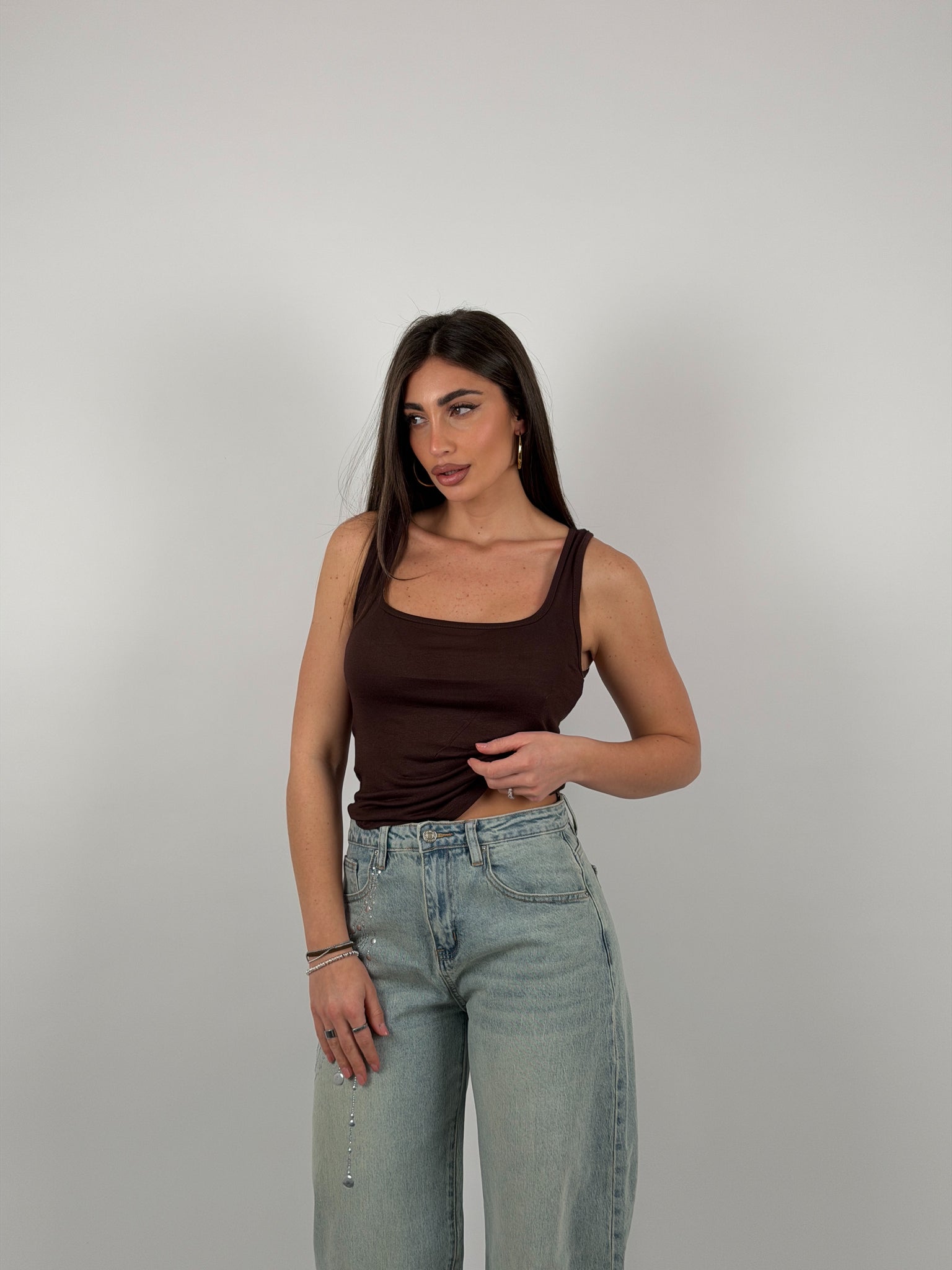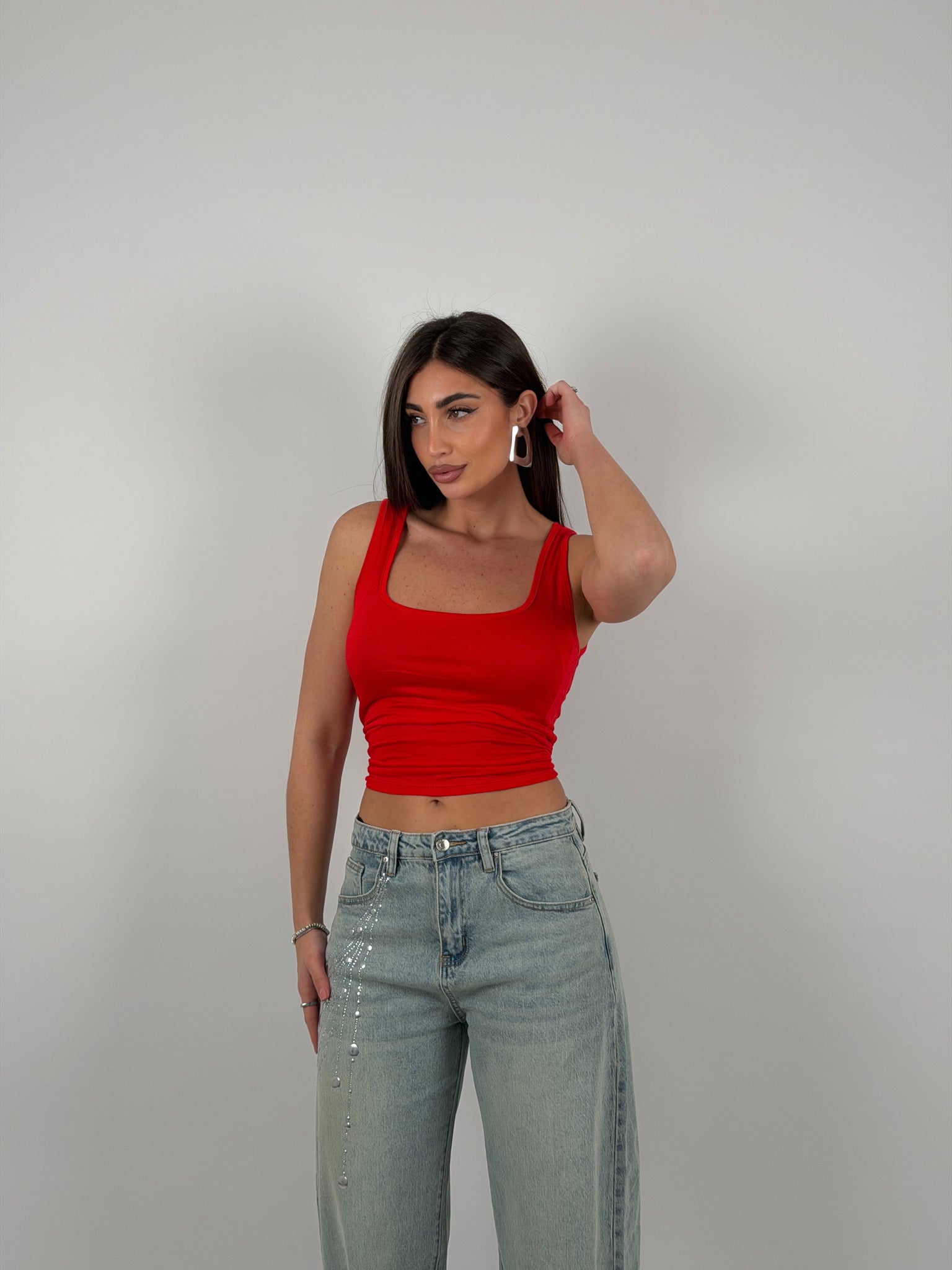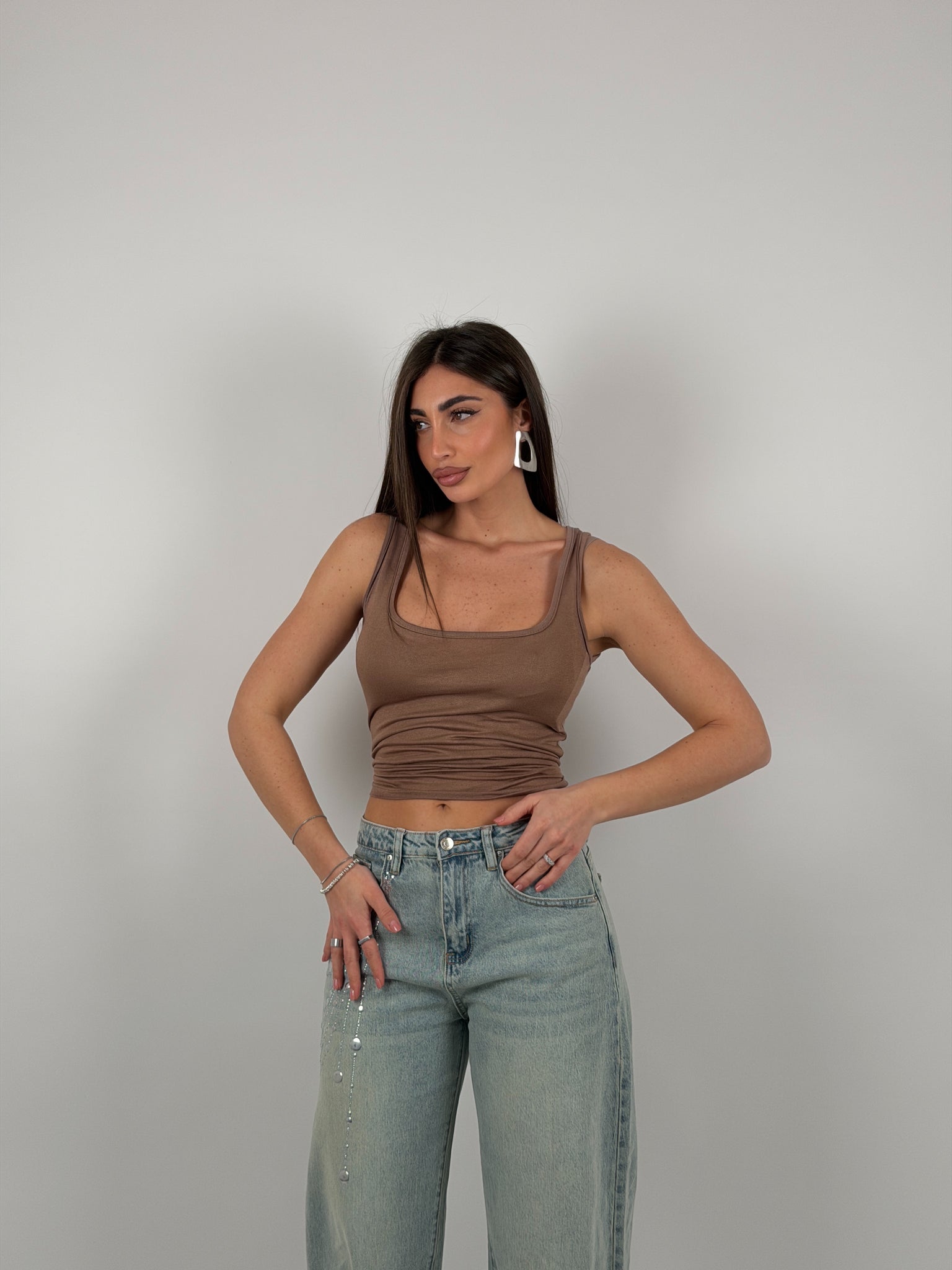 Canotta semivelata, scollo quadrato.