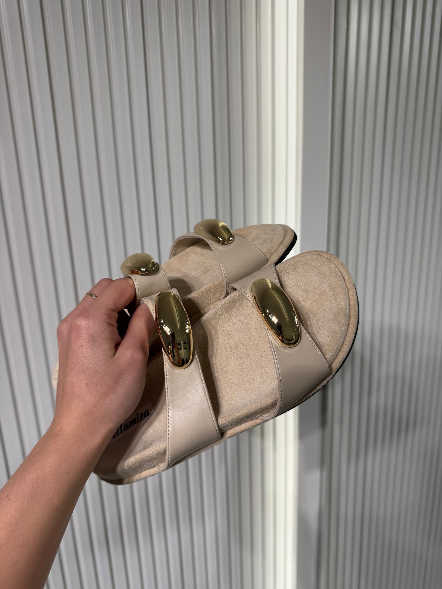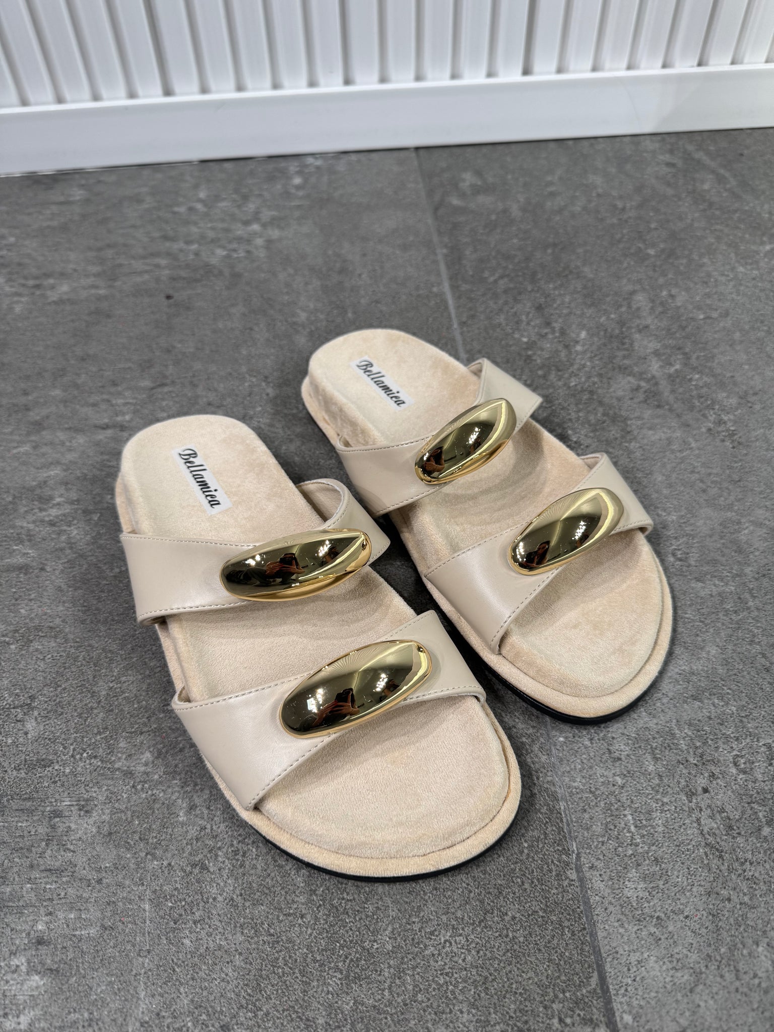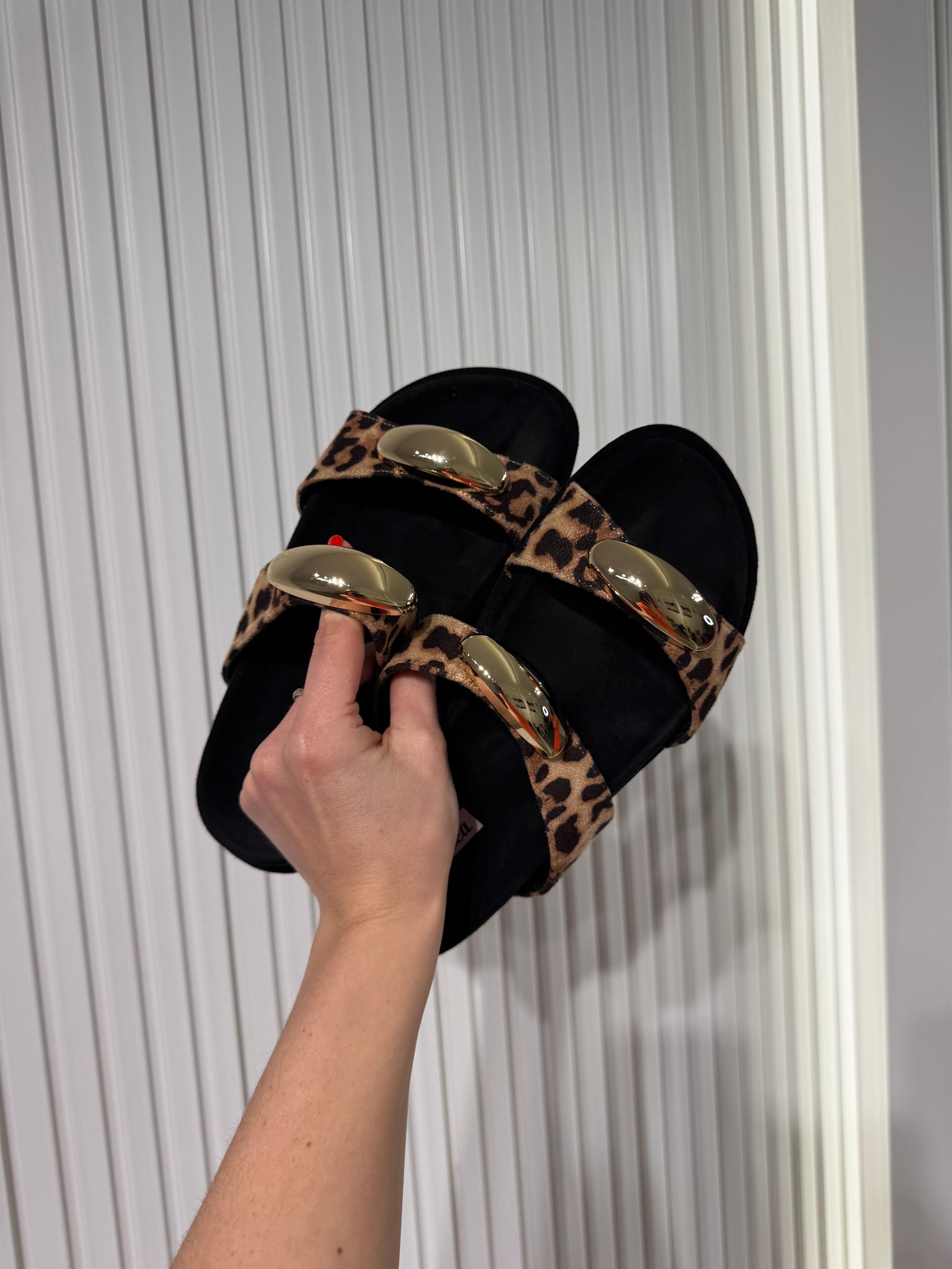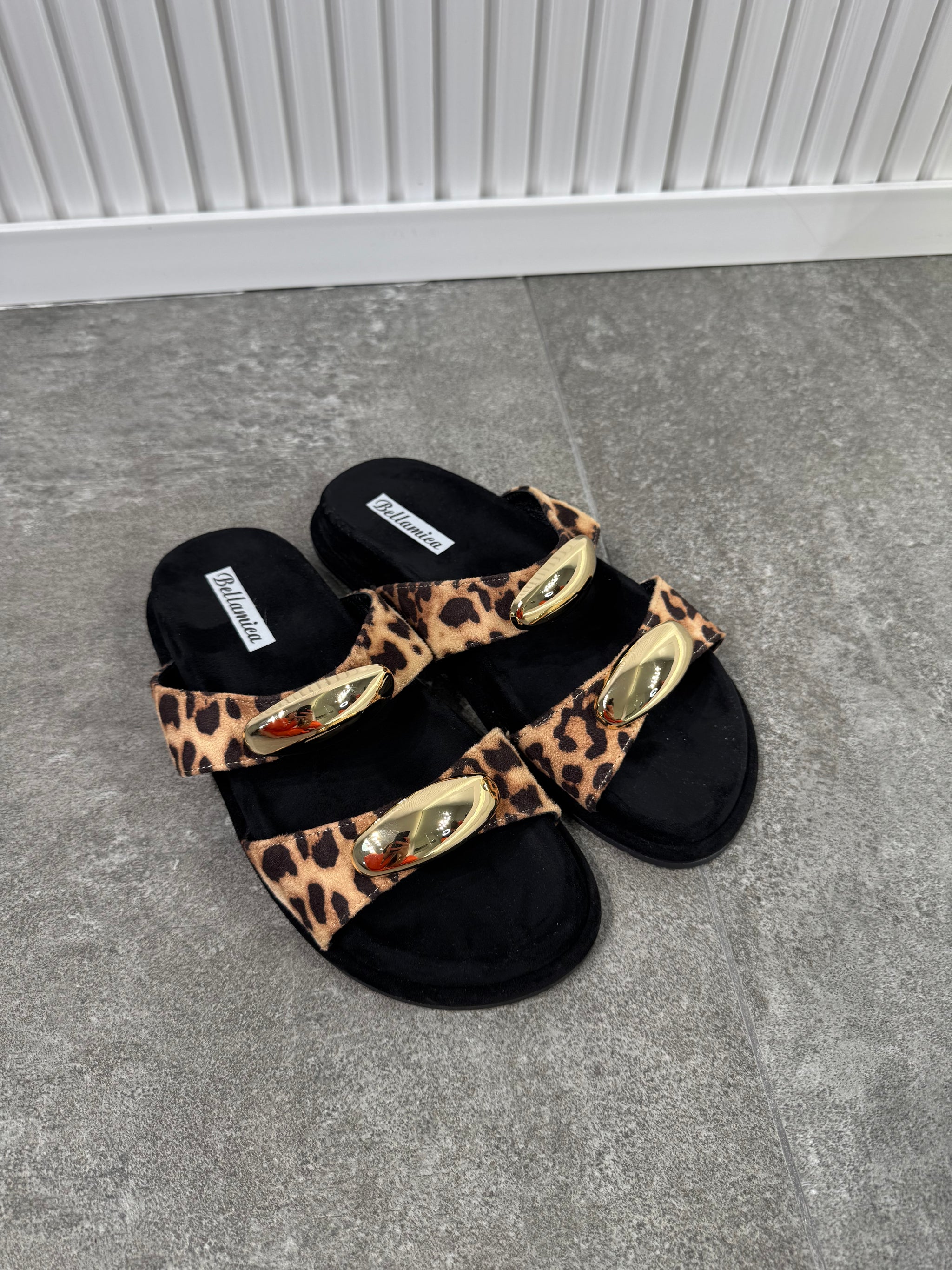 Ciabatta scamosciata, dettaglio gioiello suo cinturini.