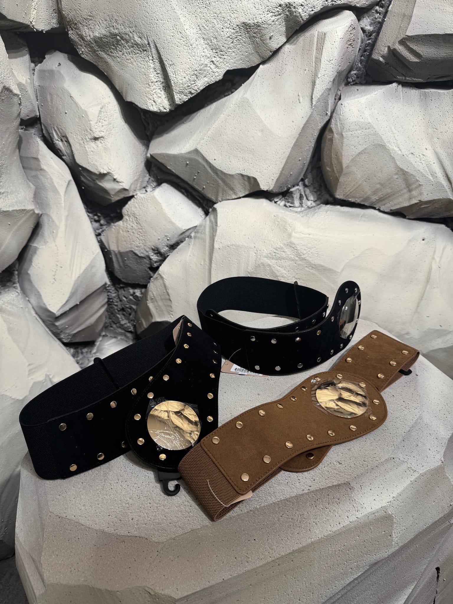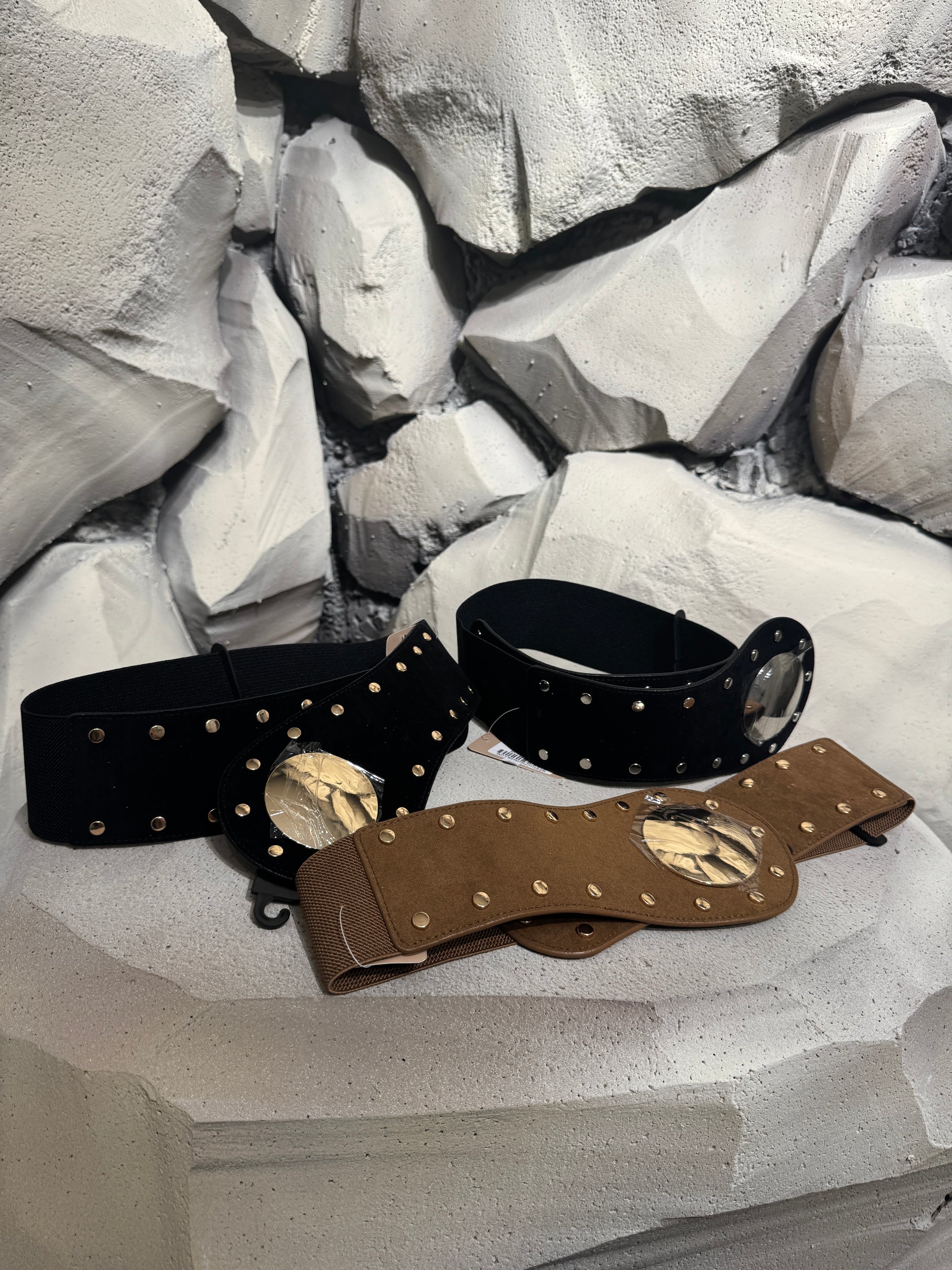 Cintura elastica con dettagli oro.