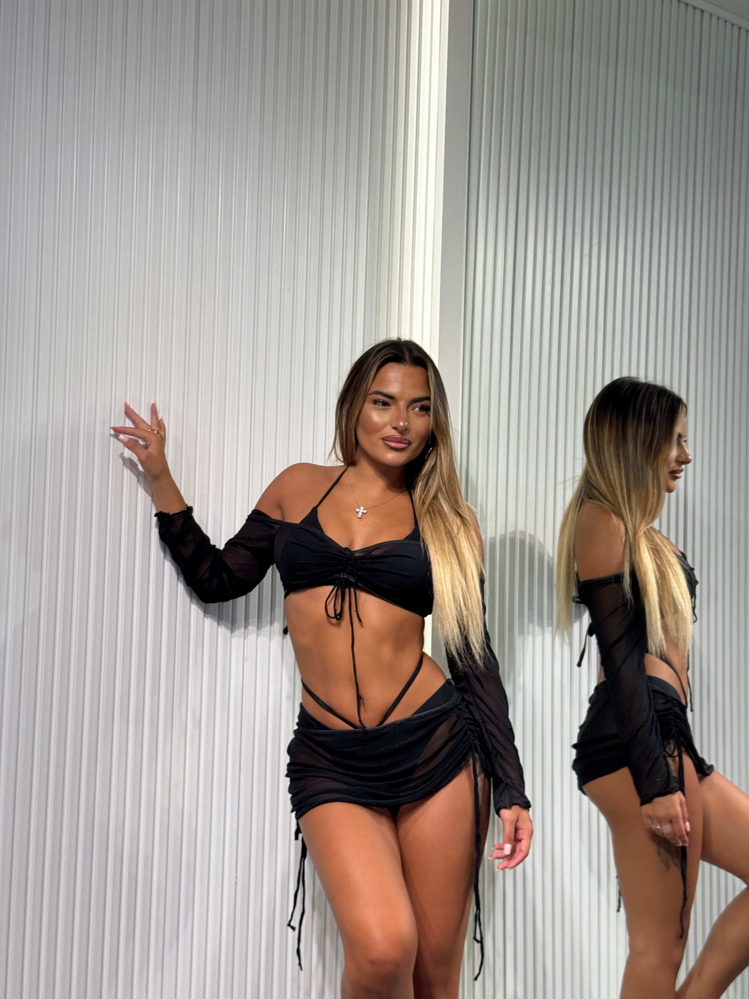 Costume 4 pezzi, bikini regolabile, completo in velo, gonna più top