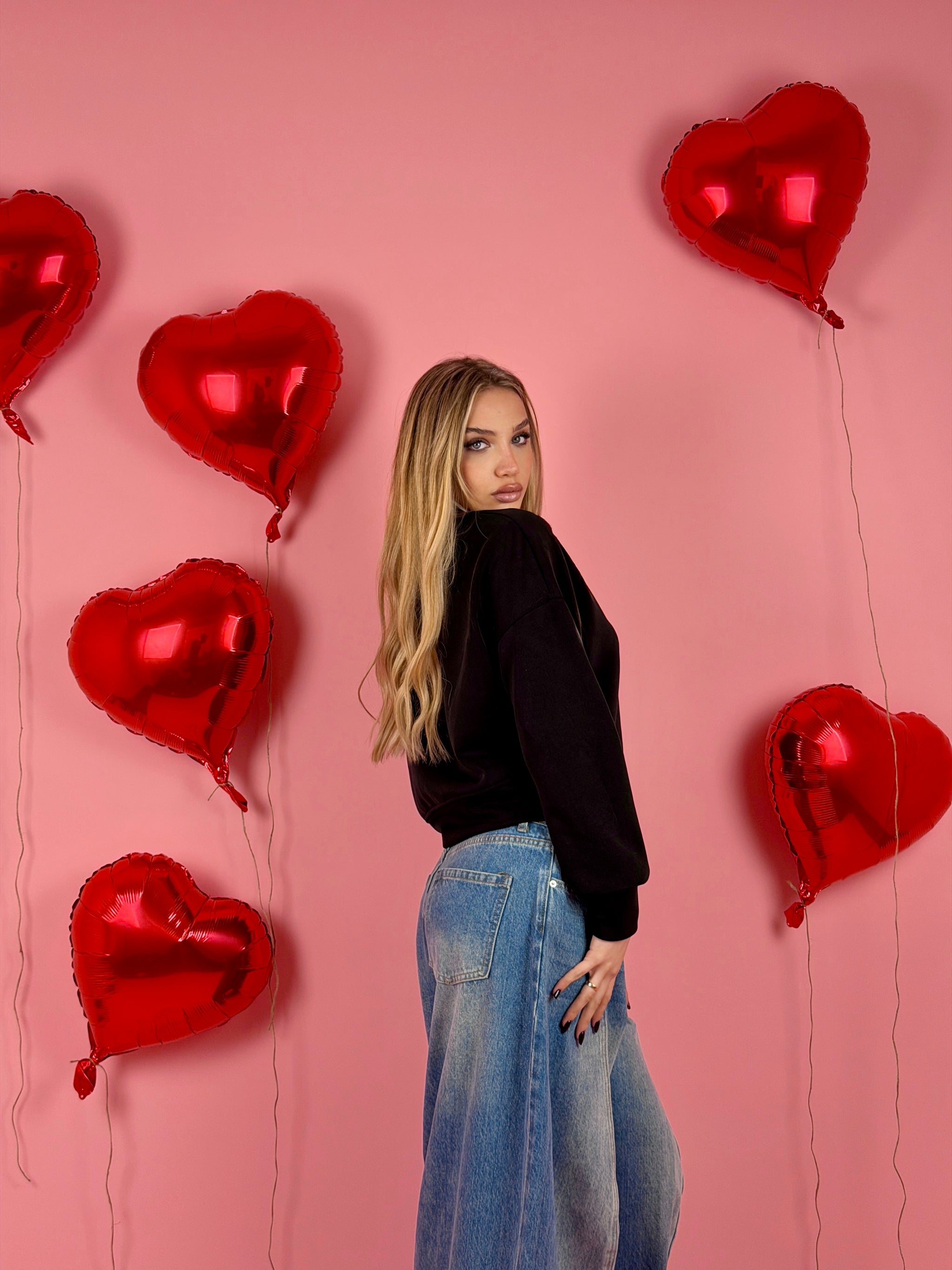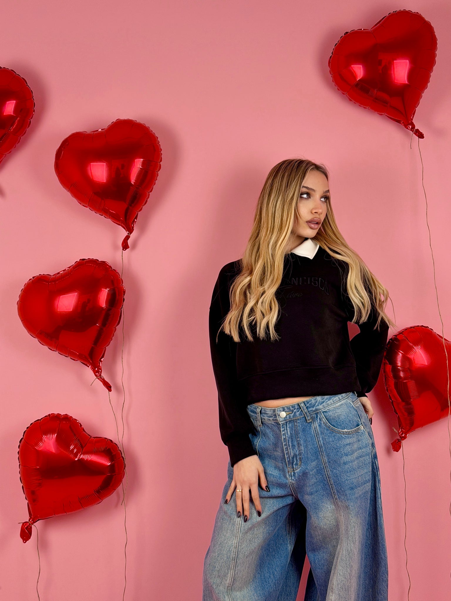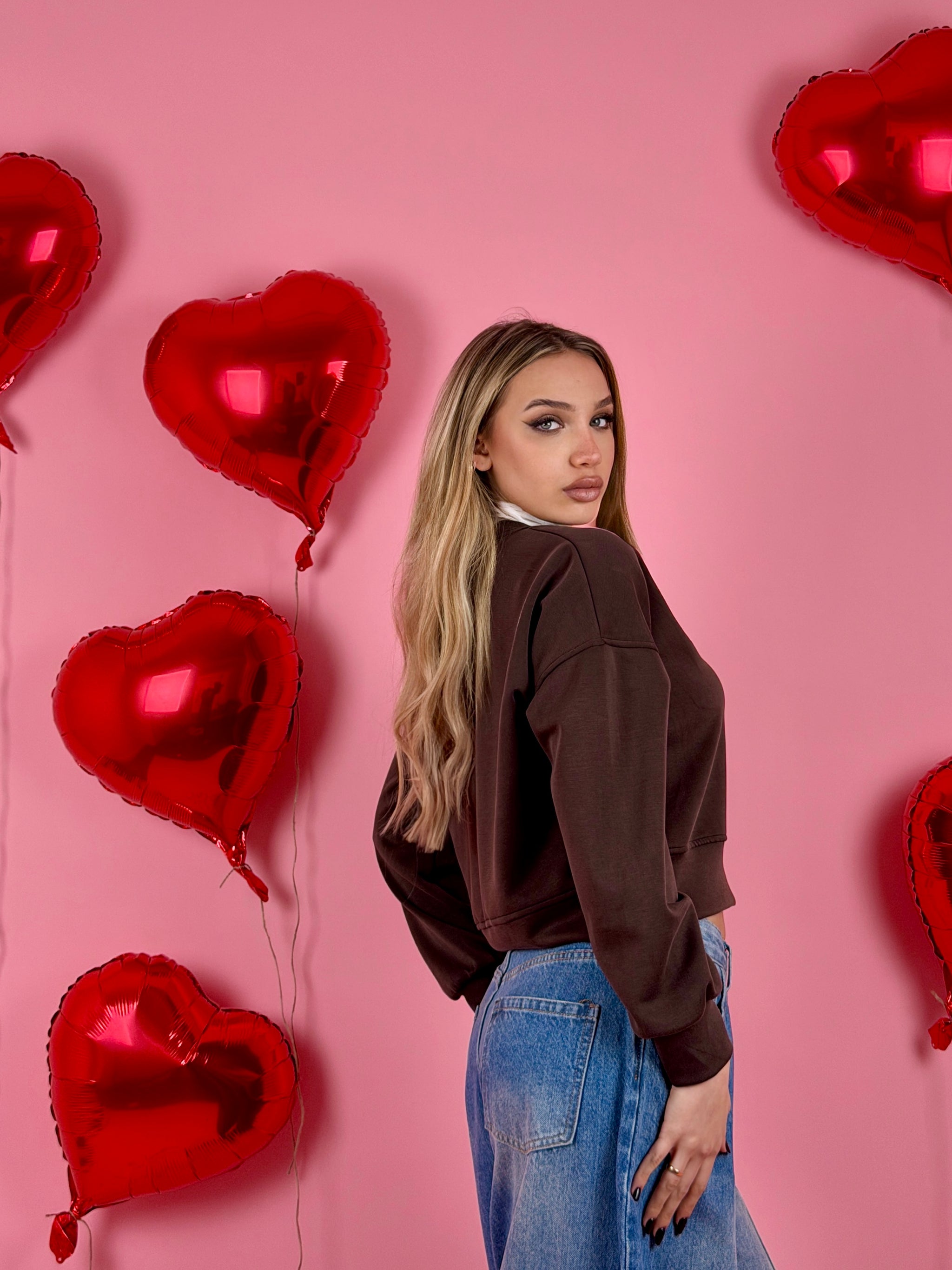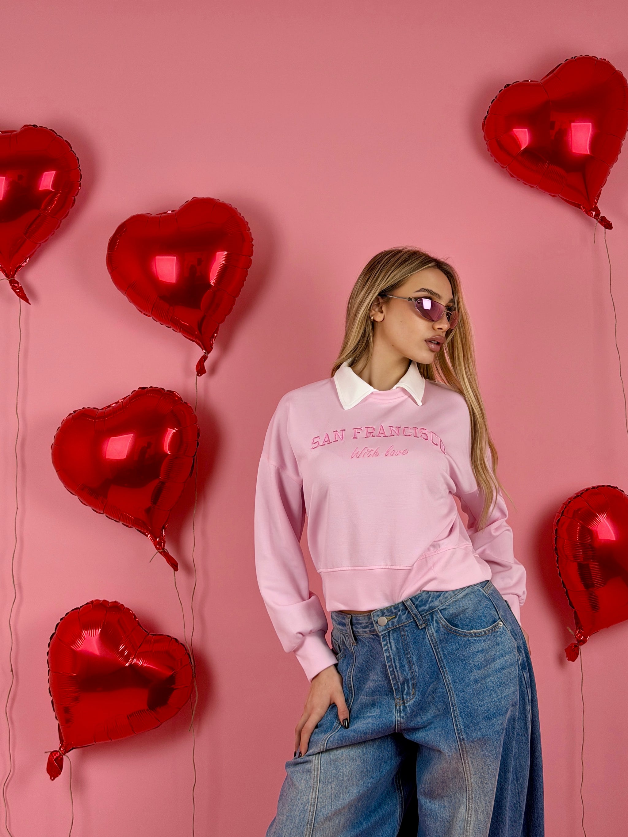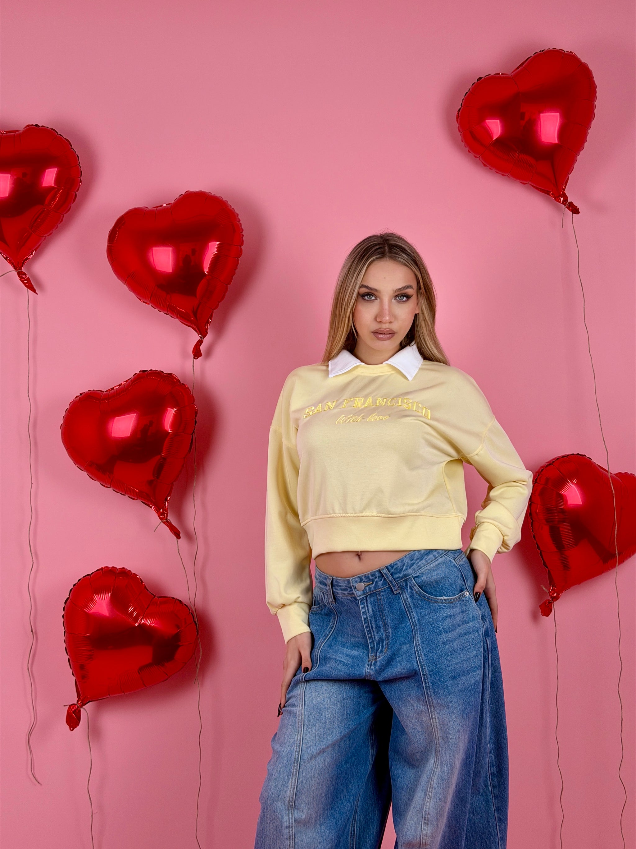 Felpa in tessuto morbido con ricamo sul davanti, colletto a camicia.