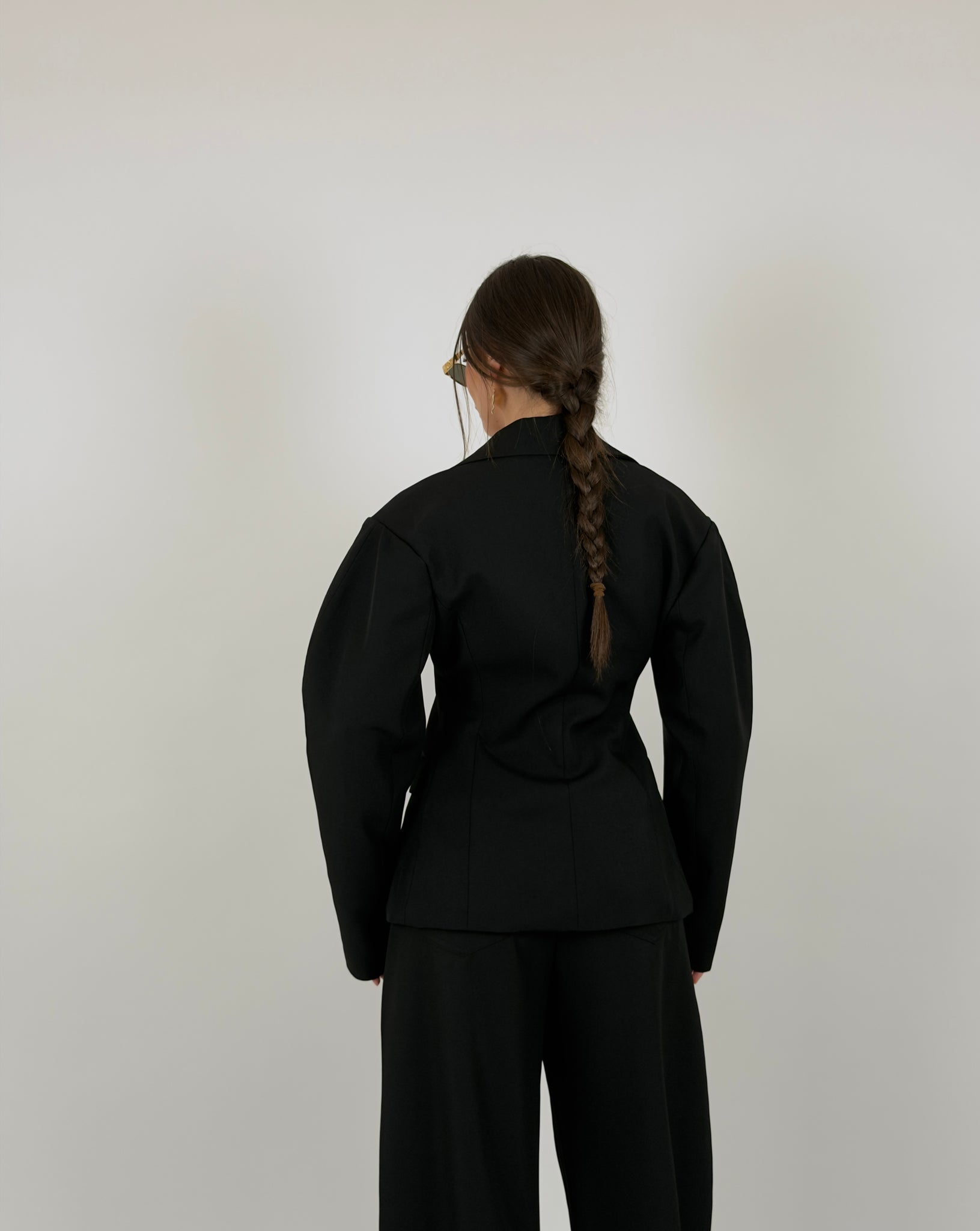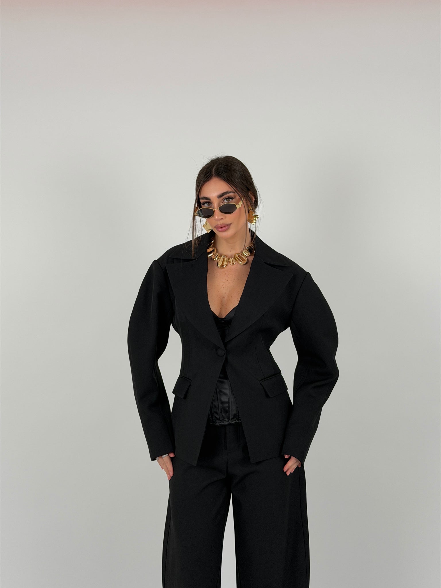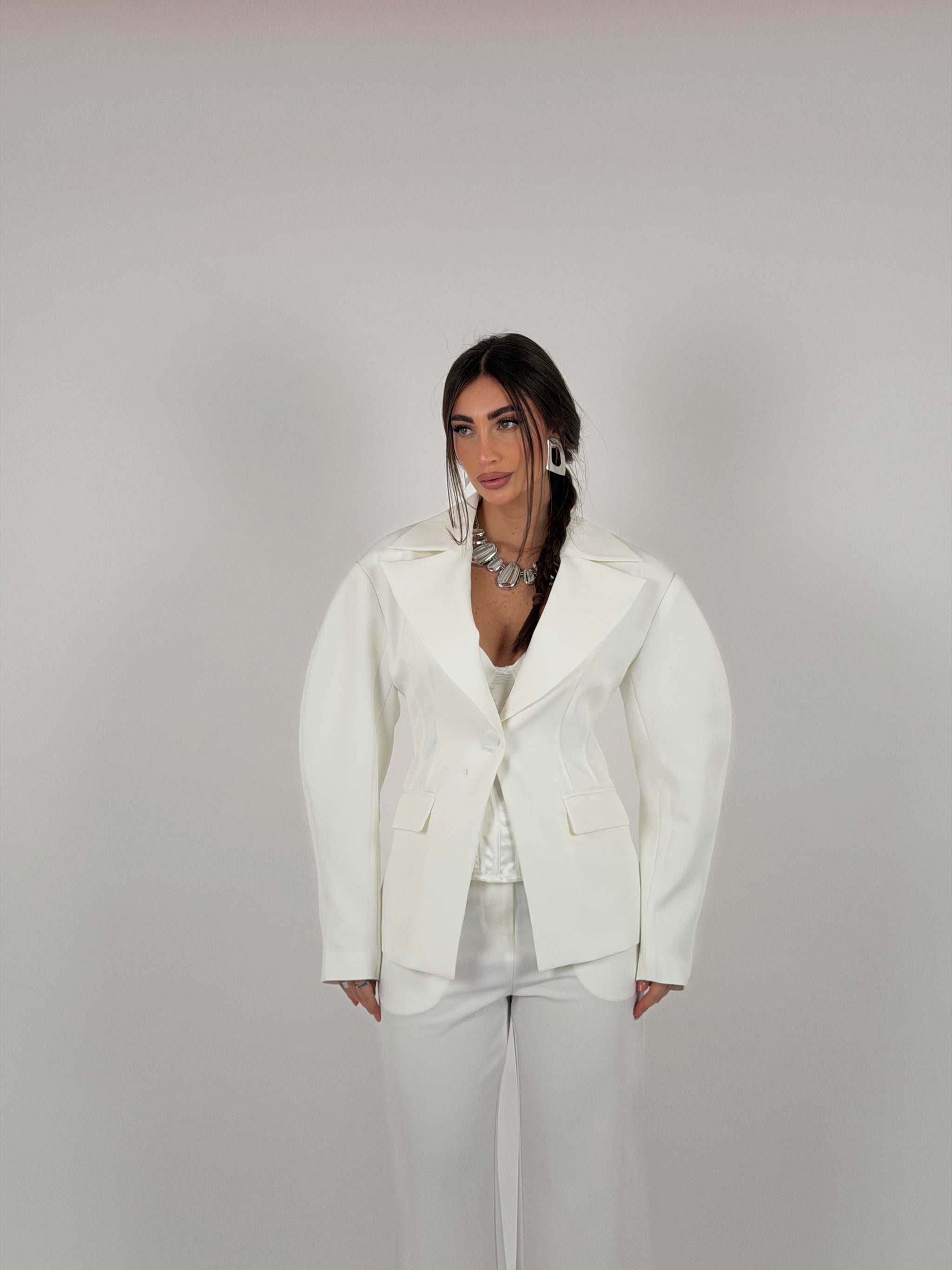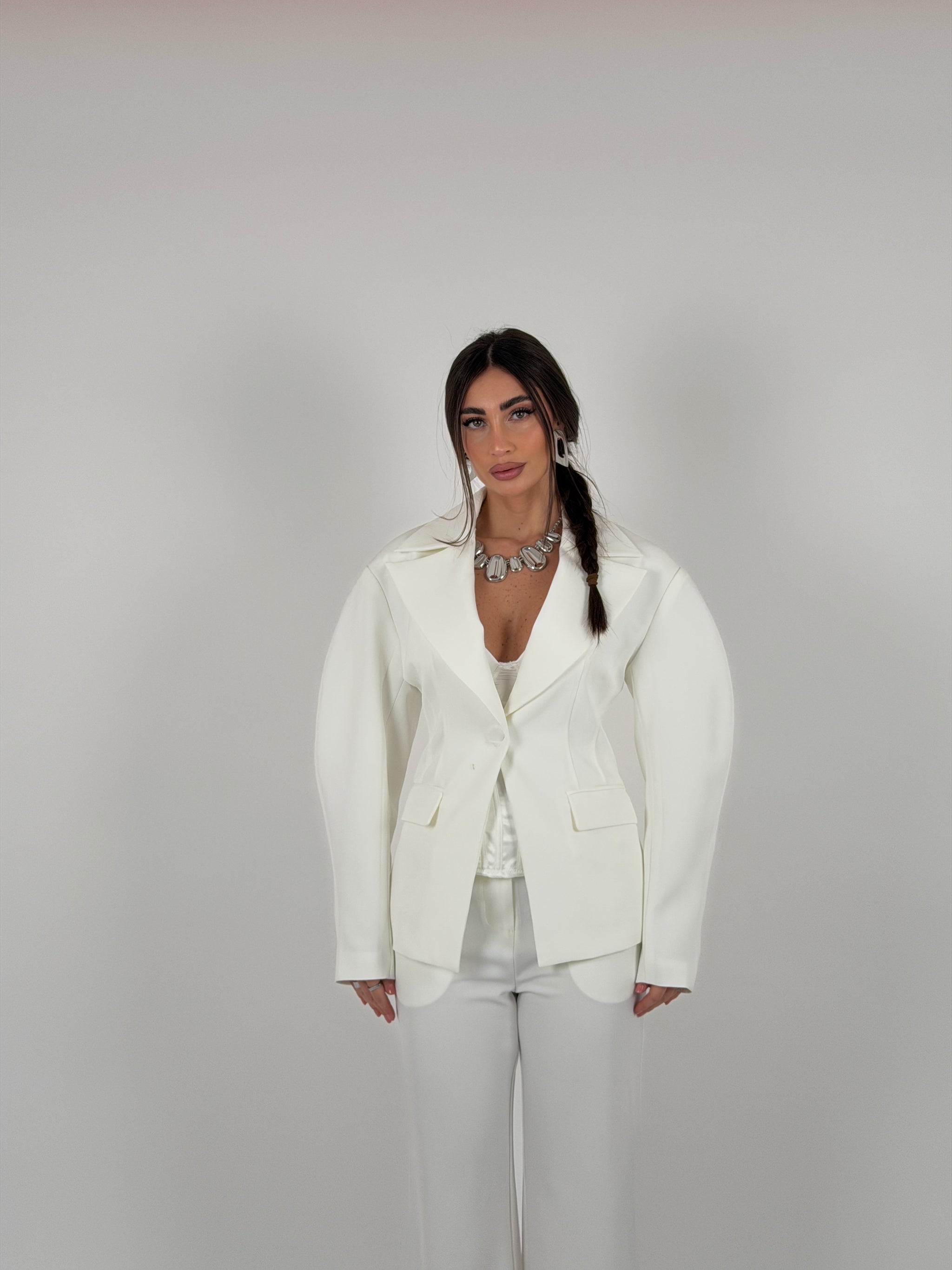 Giacca foderata all’interno, avvitata e spalline preformate, bottone sul davanti per la chiusura.