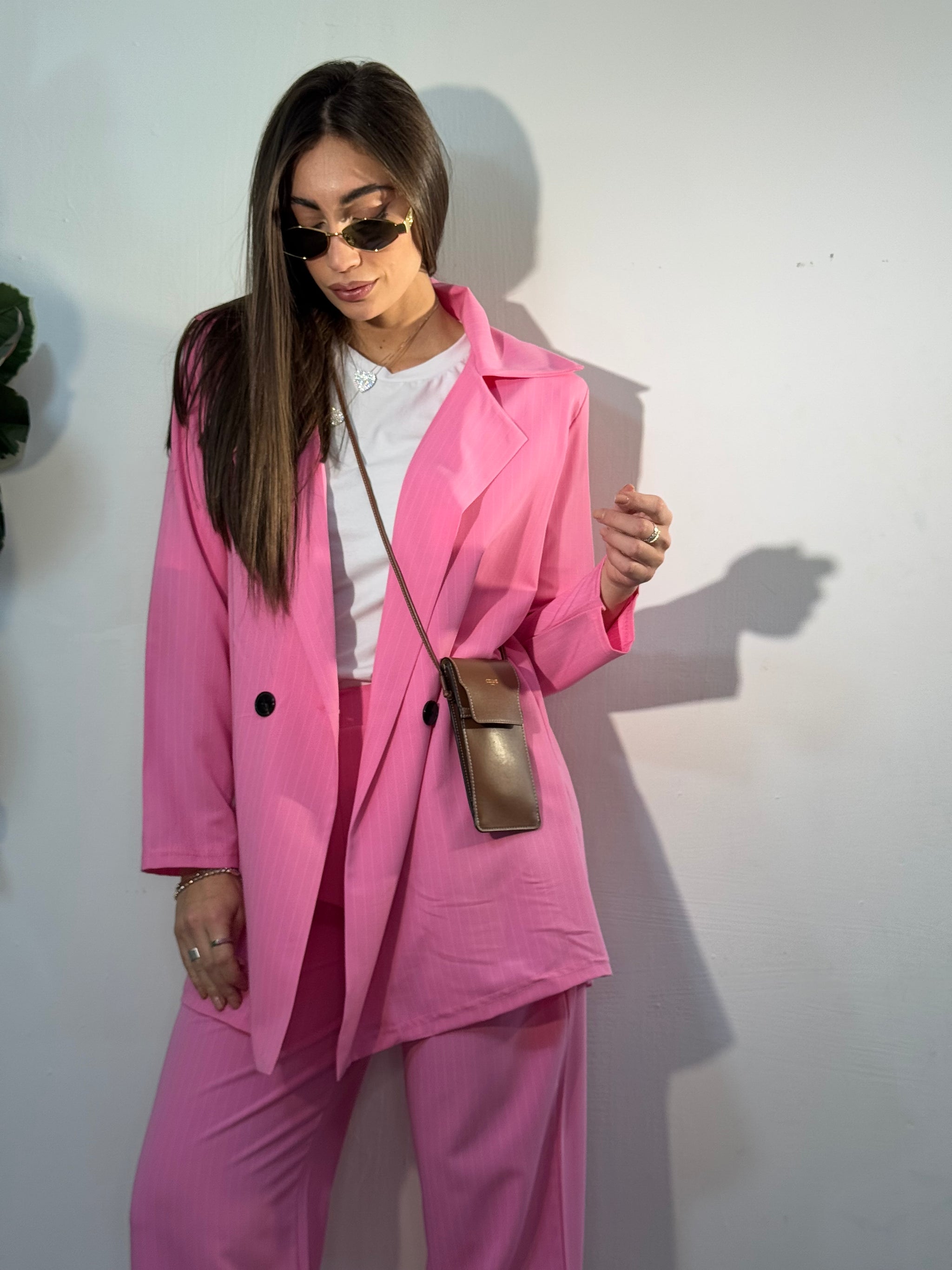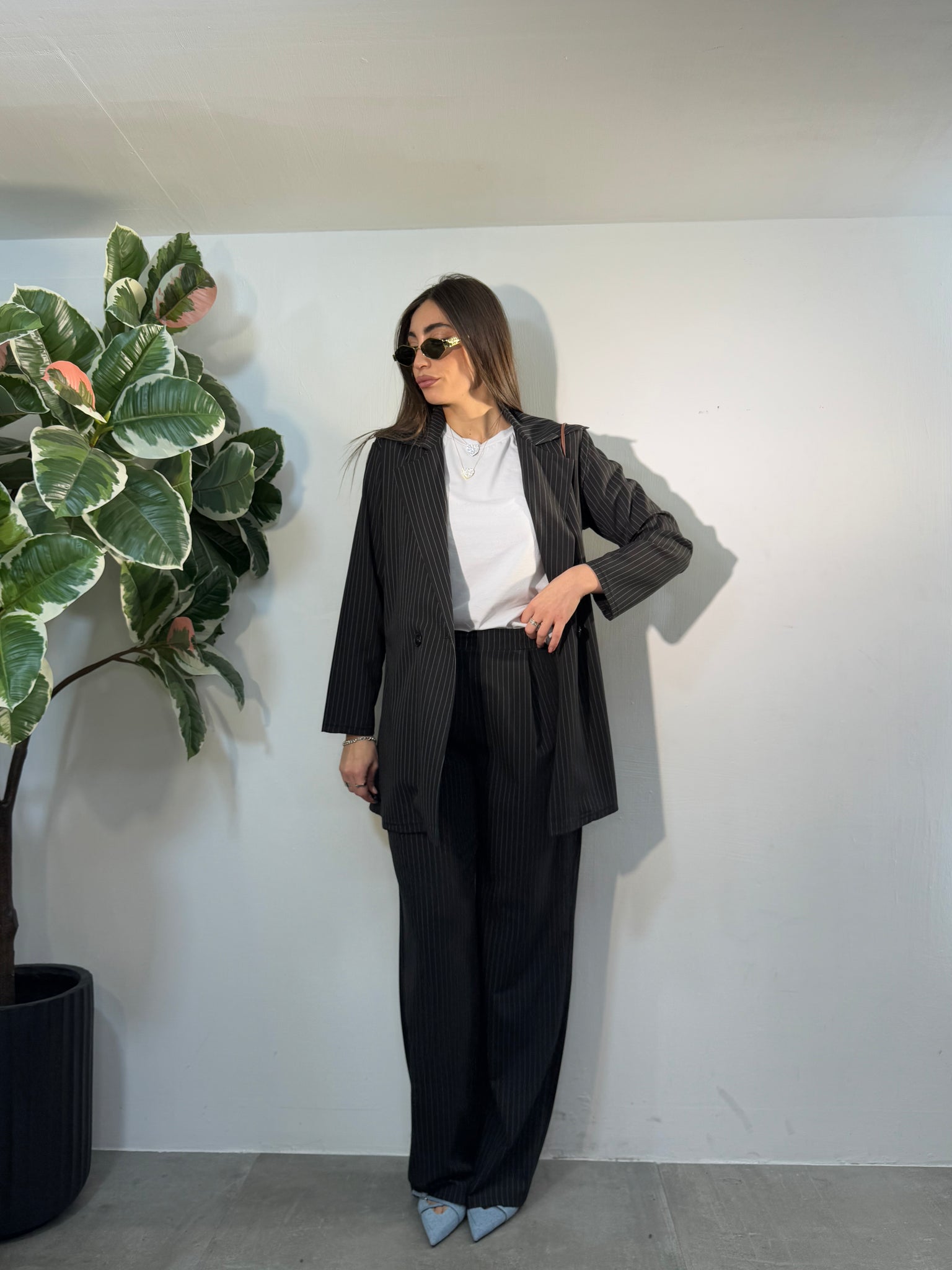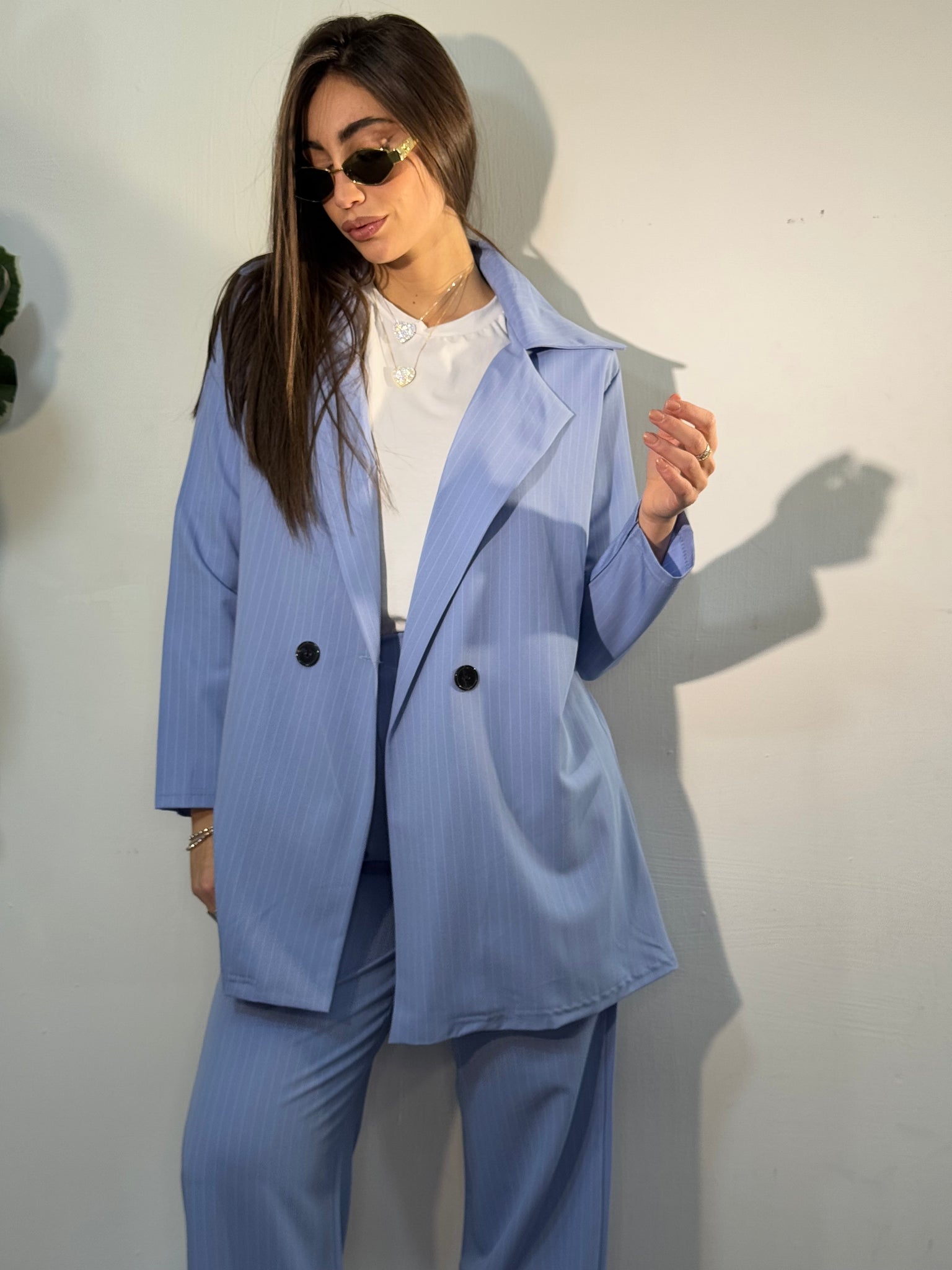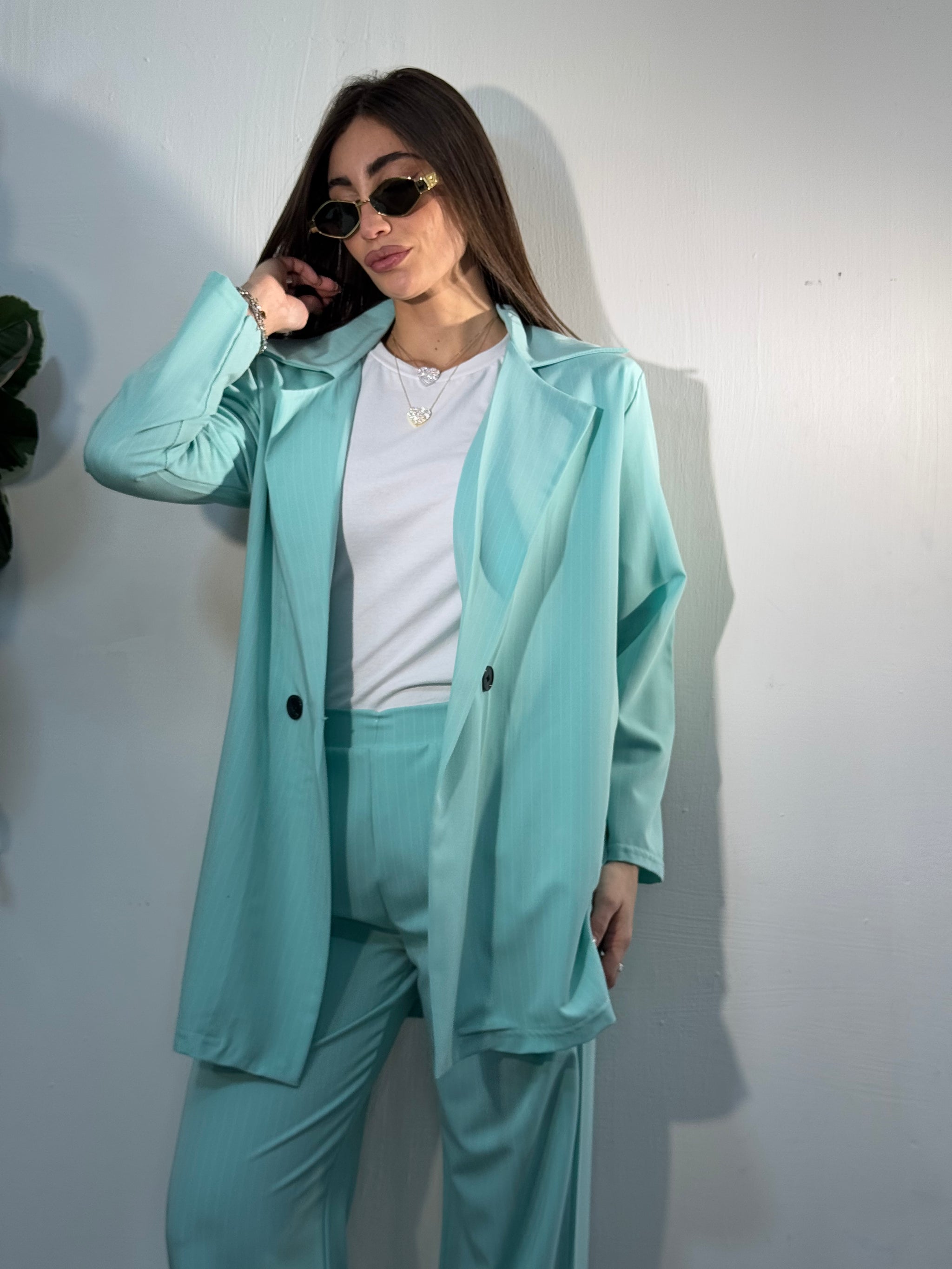 Giacca lunga tessuto gessato