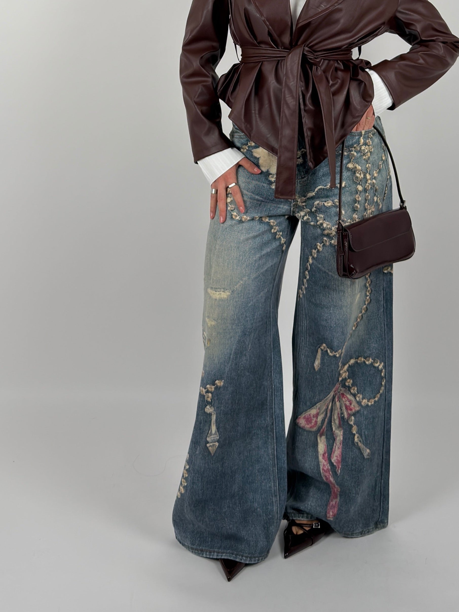 Jeans palazzo con stampe