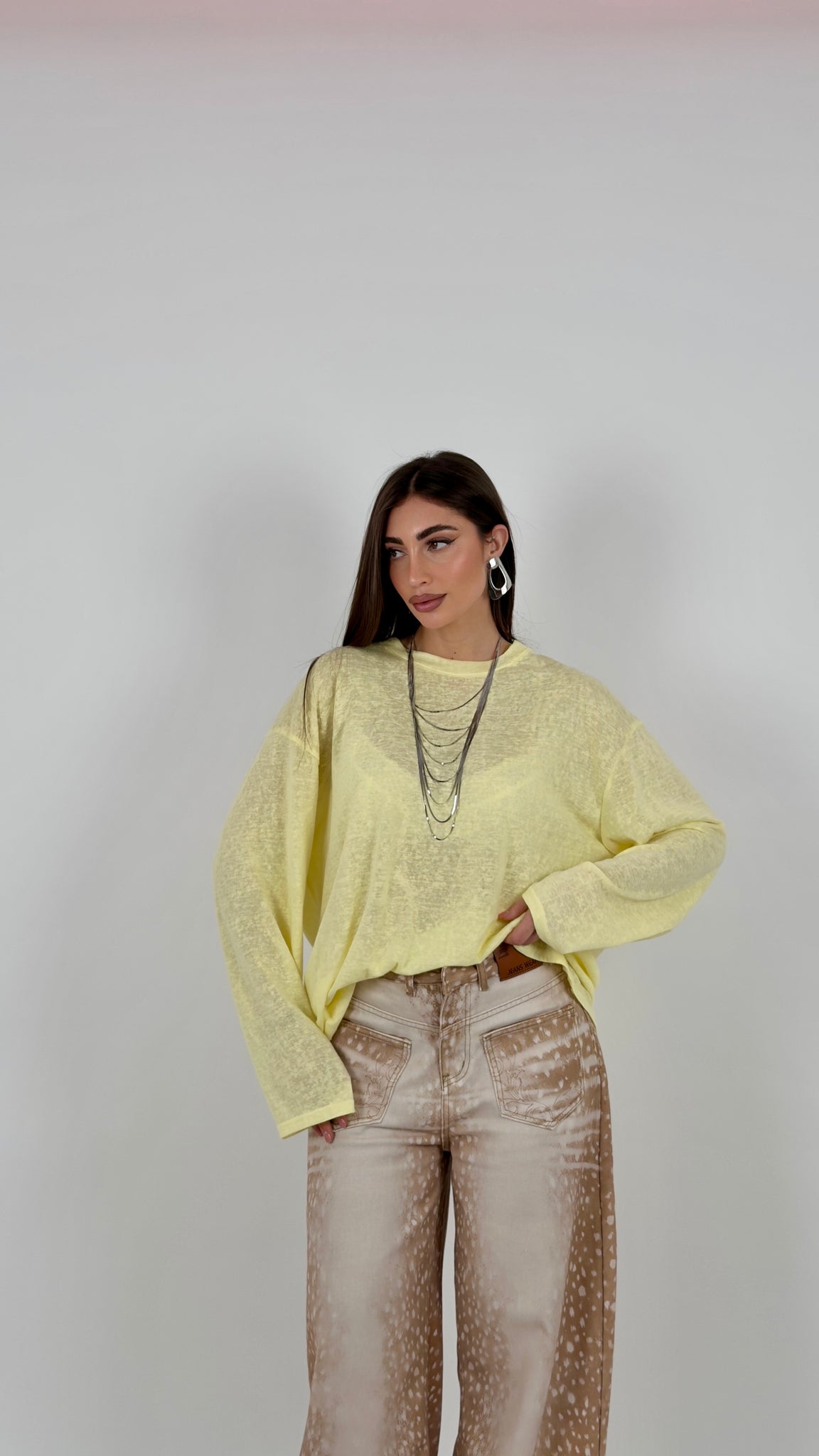 Longsleeve semivelata, girocollo e manica lunga, fit over size.