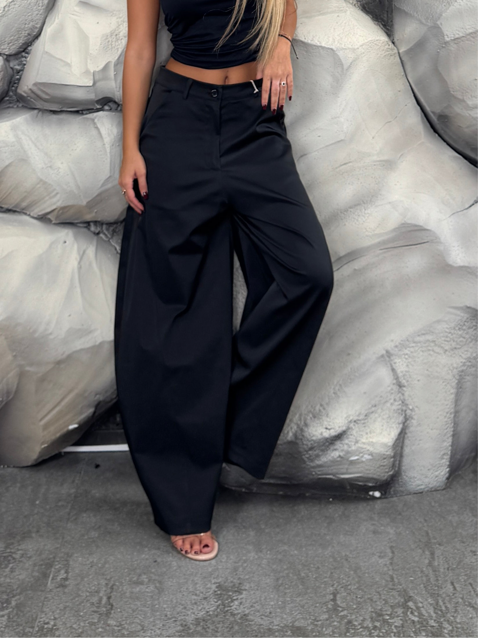 Pantalone di tessuto, modello ballon, cuciture trasversali.