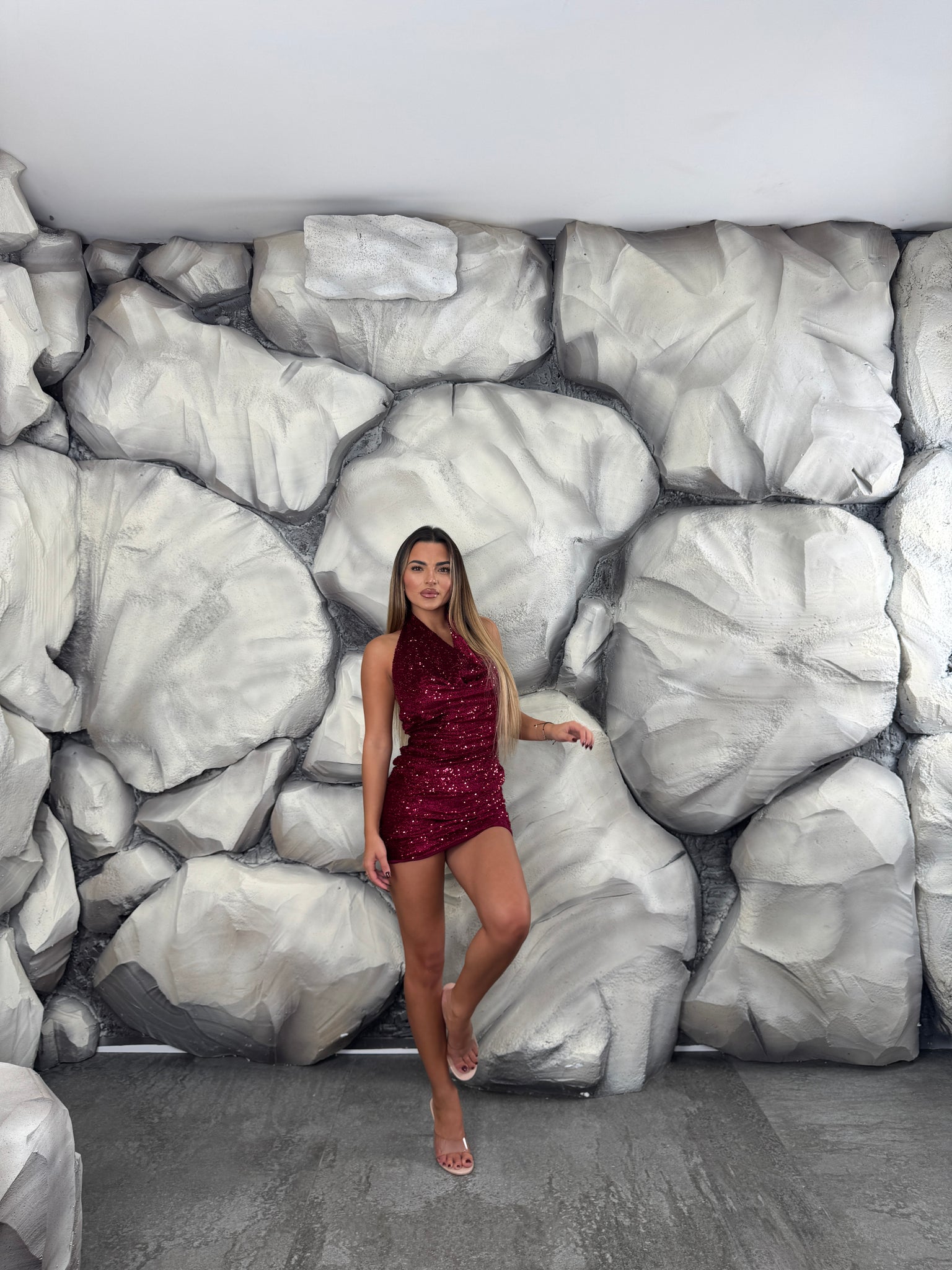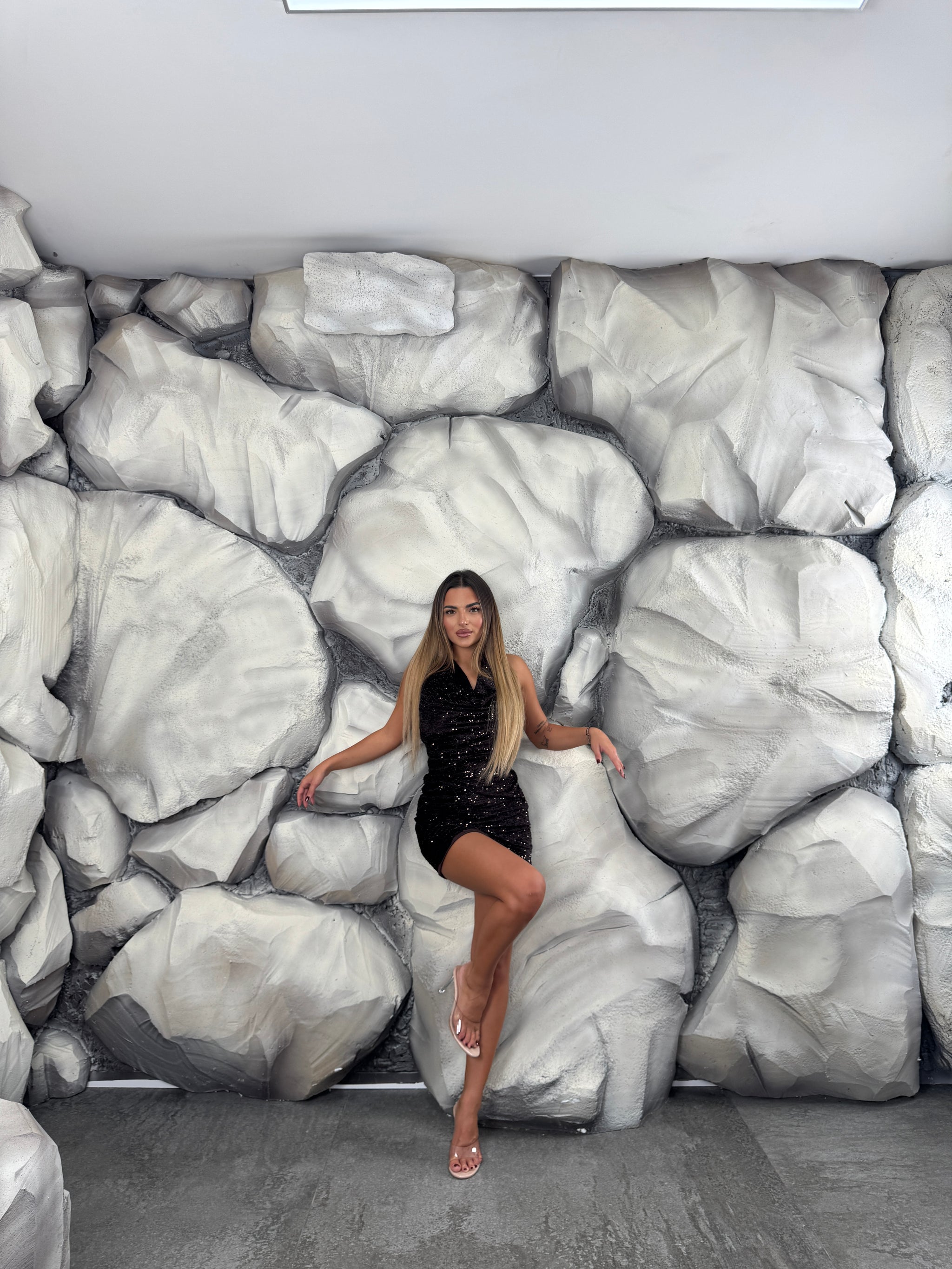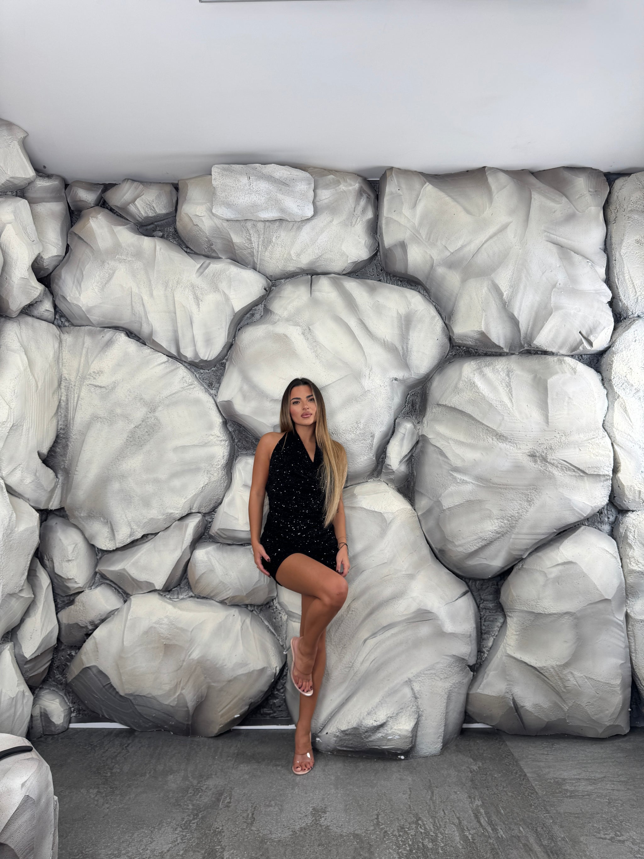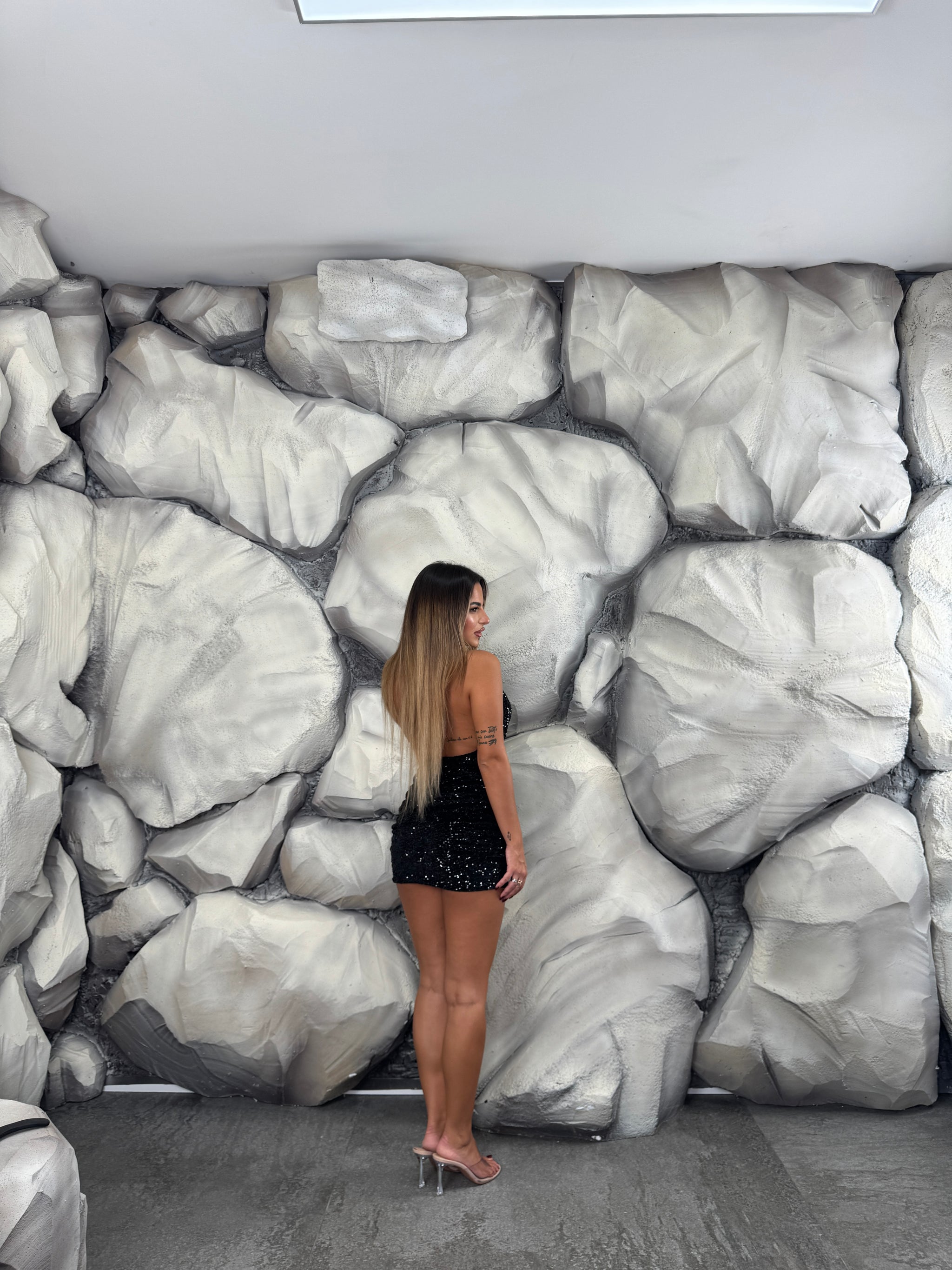 Vestito completamente paillettes, scollo morbido e aperto sul retro.
